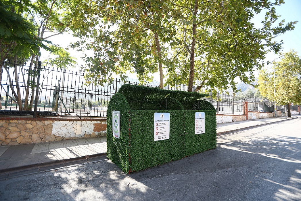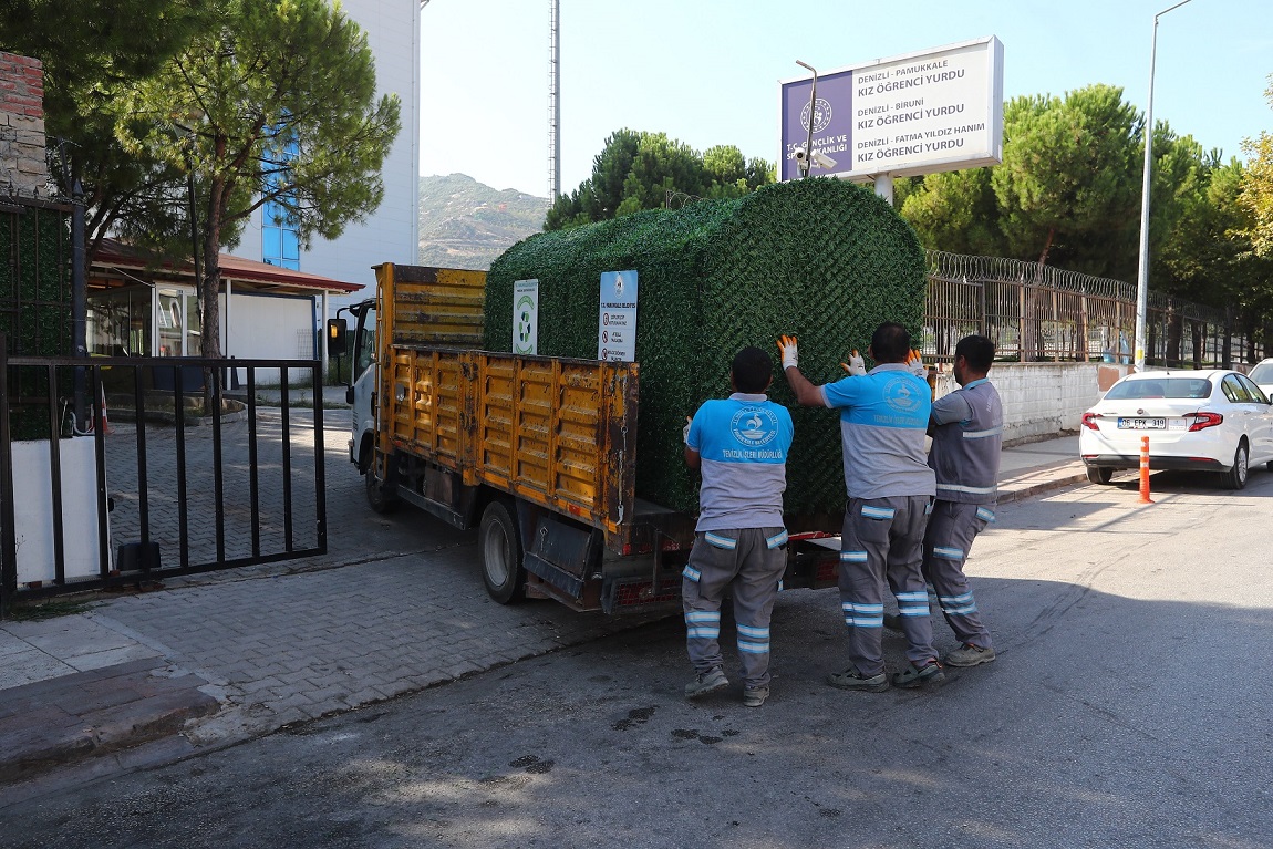 Pamukkale Belediyesi Temizlik İşleri Müdürlüğü personelinin atık malzemeleri değerlendirerek belediye atölyesinde ürettiği giydirme örtüleri, modern kentleşme anlayışıyla uyumlu bir tasarımla, yine belediye personeli tarafından monte ediliyor. Belediye personelince atık malzemelerden üretilip, montajı yapılan uygulama aynı zamanda ek bir bütçe de gerektirmeyerek, tasarruf da sağlıyor.
