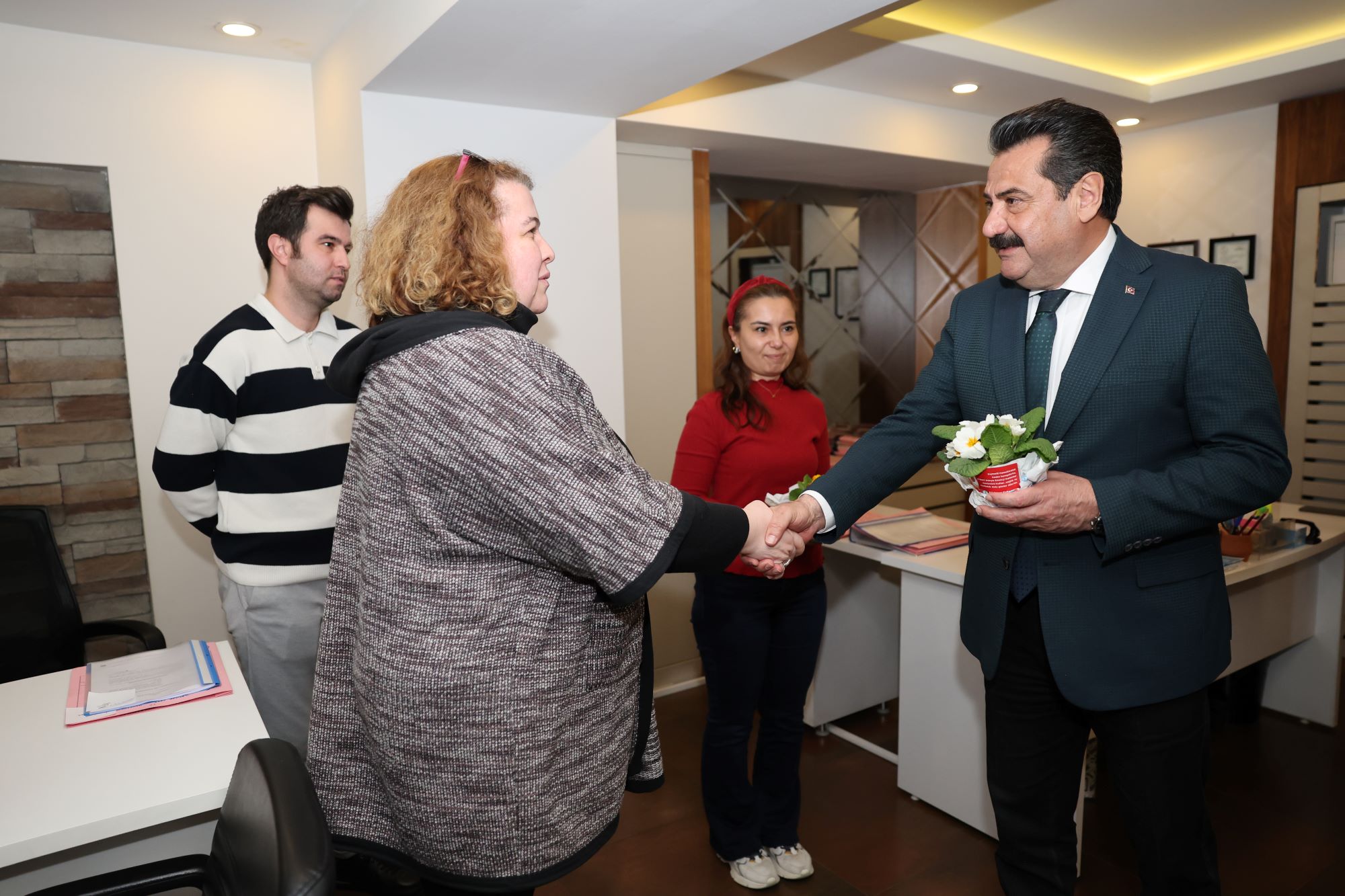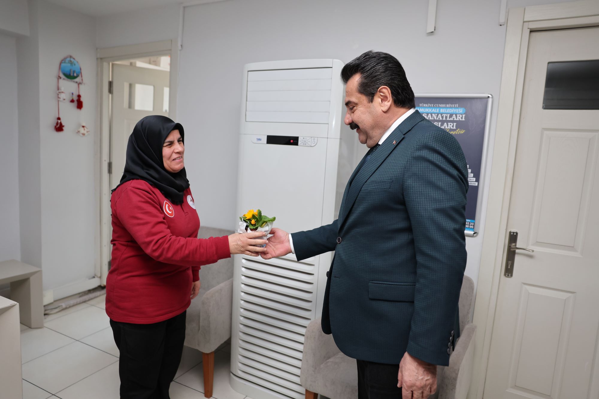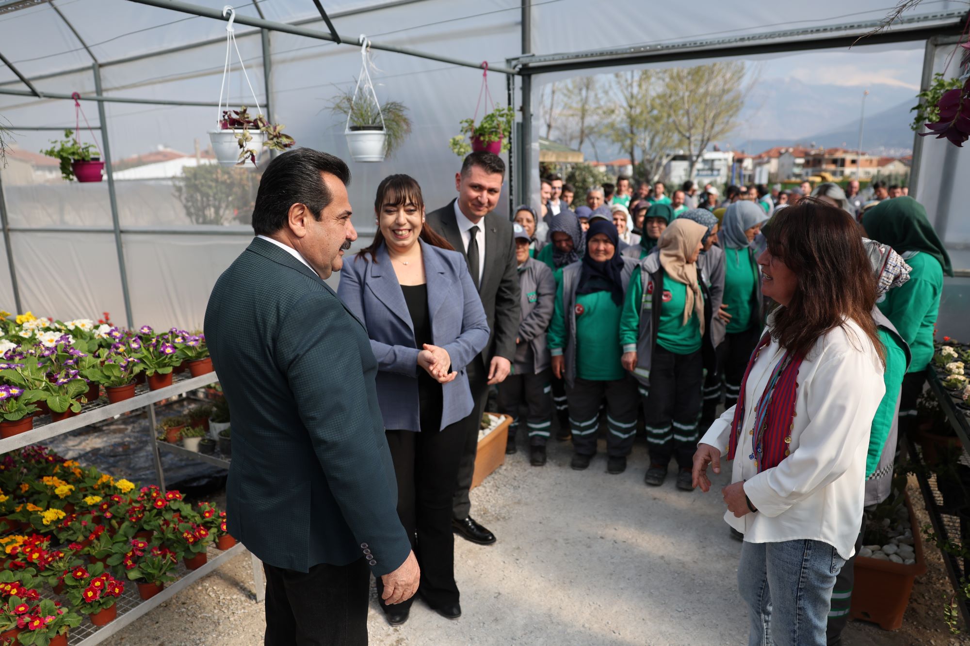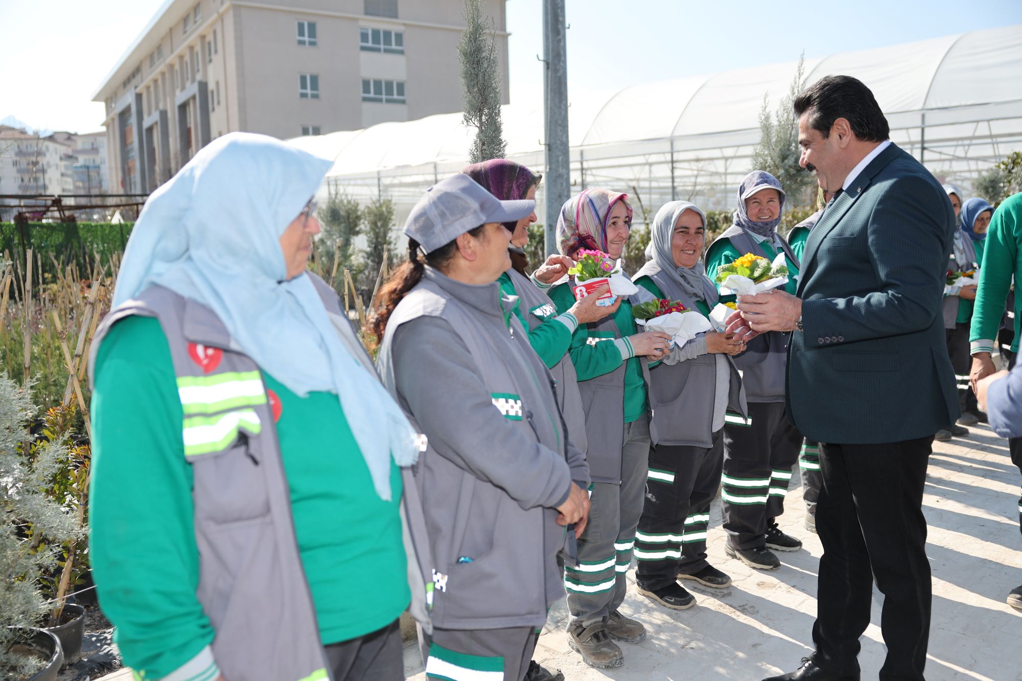 Törenin ardından programını sürdüren Pamukkale Belediye Başkanı Ali Rıza Ertemur, sadece üretim merkezinde değil, belediyenin tüm birimlerinde görev yapan kadın çalışanları da ziyaret etti. Her bir kadın personelin 8 Mart Dünya Kadınlar Günü’nü tek tek kutlayan Başkan Ertemur, Fidan Üretim Merkezi’nde yetişen çiçekleri takdim ederek özverili çalışmalarından dolayı teşekkürlerini iletti.