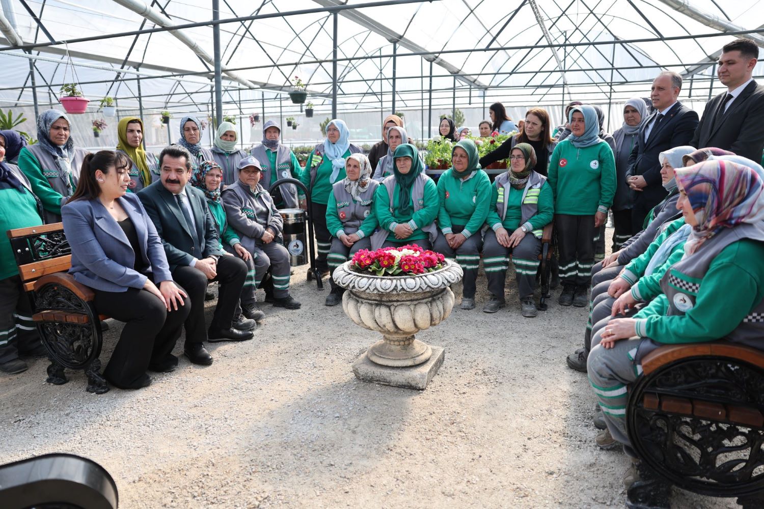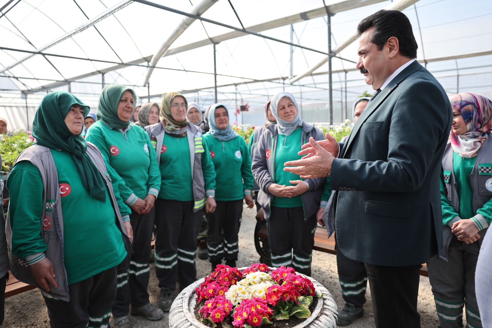 Pamukkale’nin yeşil dokusunu güçlendirme hedefiyle yenilenen Fidan Üretim Merkezi, modern altyapısı ve çalışanların özverisiyle yepyeni bir kimliğe büründü. Son teknoloji ısıtma ve sulama sistemleriyle donatılan merkez, ilçenin dört bir yanını süsleyecek çiçeklerin en sağlıklı şekilde yetişmesine imkân tanıyor. Başkan Ertemur, Park ve Bahçeler Müdürlüğü bünyesinde, ağırlıklı olarak kadın çalışanların görev aldığı tesisin açılışını özellikle 8 Mart Dünya Emekçi Kadınlar Günü’yle birleştirmek istediklerini ifade ederek, merkezin sadece bir üretim alanı değil, kadın emeğinin somutlaştığı bir gurur tablosu olduğunu vurguladı.