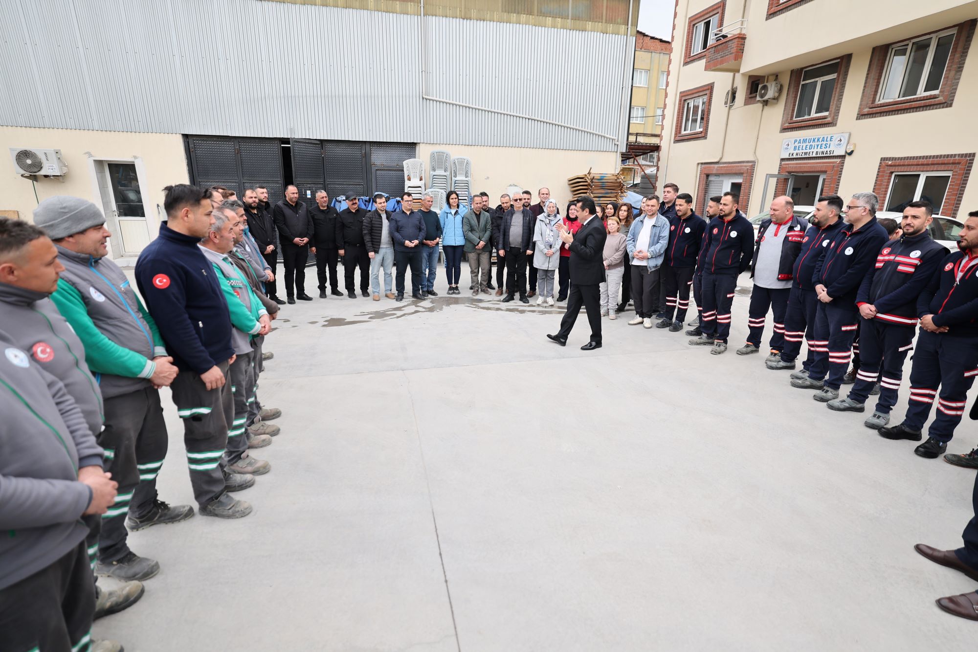 Ziyaretleri sırasında personel tarafından ilgi ve samimiyetle karşılanan Pamukkale Belediye Başkanı Ali Rıza Ertemur, her bir çalışanla tek tek tokalaştı. Kurumsal bir aidiyet ve dayanışma vurgusu yapan Başkan Ertemur, konuşmasında şu ifadelere yer verdi: