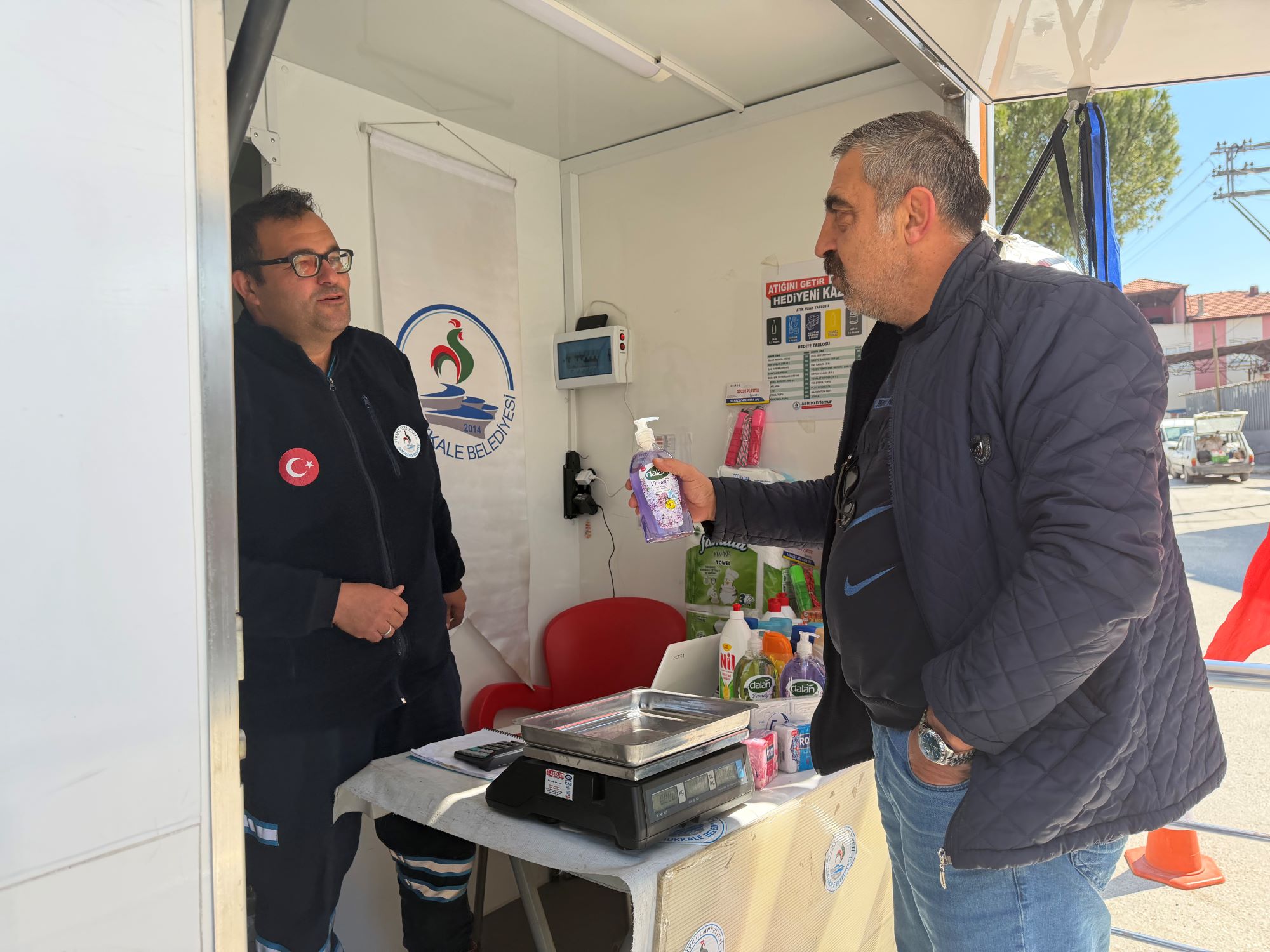 Daha temiz bir Pamukkale için hafta içi ve Cumartesi günleri yoğun bir tempoda çalışan İklim Değişikliği ve Sıfır Atık Müdürlüğü ekipleri, toplam 26 mahallede geri dönüşüm seferberliğini sürdürüyor. Pamukkale genelinde çevre bilincini yaygınlaştırmayı hedefleyen proje kapsamında Mobil Atık Toplama Aracı; Karşıyaka, Gökpınar, Yunusemre, Deliktaş, Zümrüt, Akhan, Aktepe, Zeytinköy, Fatih, Fesleğen, Kayıhan, Mehmetçik, Kınıklı, Hacıkaplanlar, Kervansaray, İstiklal, Siteler, Kuşpınar, Hürriyet, Cumhuriyet, Anafartalar, Atalar, İncilipınar, Topraklık, Dokuzkavaklar ve 15 Mayıs mahallelerini kapsayan geniş bir ağda hizmet vermeye devam ediyor. Atıklarını teslim ederek puan toplayan vatandaşlar; basketbol, voleybol ve futbol topları, ip atlama setleri, plaj oyuncakları, sıvı deterjan ve sıvı sabun gibi pek çok ürüne ücretsiz olarak sahip olabiliyor.
