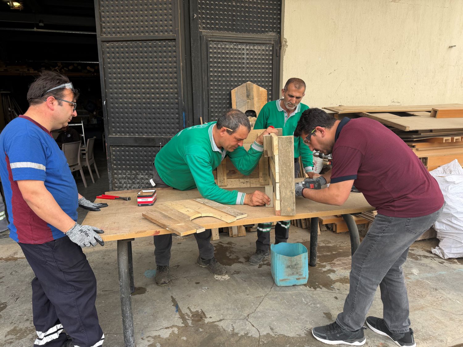 Er-Bakır tesislerinde kullanım ömrünü tamamlamış atıl durumdaki paletler, Pamukkale Belediyesi ekiplerine teslim edilmek üzere hazırlandı. Belediye araçlarıyla toplanan bu atık paletler, geri dönüşüm sürecine dahil edilerek kedi kulübesi formuna dönüştürüldü.