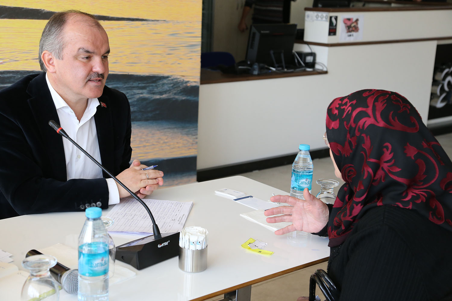 Pamukkale Belediye Başkanı Hüseyin Gürlesin’in, halk gününde başlattığı yeni format büyük ilgi görüyor. Denizli’de bir ilki gerçekleştirerek halk günleri toplantısına yepyeni bir bakış açısı kazandıran Pamukkale Belediye Başkanı Hüseyin Gürlesin, vatandaşları İŞKUR temsilcisi ile buluşturmaya devam ediyor. Başkan Gürlesin, “Pamukkale Belediyesi olarak amacımız vatandaşlarımızın her birinin derdine çözüm bulmak” dedi.