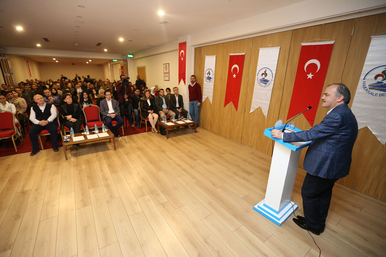 Pamukkale Belediye Başkanı Hüseyin Gürlesin, üst yapıdan alt yapıya ve rutin belediyecilik hizmetlerinin yanı sıra kültür, sanat, sosyal belediyecilik alanında da başarılı işler yapmaya devam ettiklerini ifade ederek, halka en iyi hizmeti verme noktasında belediye personelini eğitimlerine de ağırlık verdiklerini söyledi. 1 Ekim’de yürürlüğe giren Yeni İmar Yönetmeliği’nin önemine dikkat çeken Başkan Gürlesin, “Amacımız, tüm belediye personelimizle birlikte halkımıza en kaliteli hizmeti vermek. Bu amacımız doğrultusunda da son olarak ‘Yeni İmar Yönetmeliği’ hakkında hem belediye personelimizin hem de diğer kurumlardan imar konusunda faydalanmak isteyen herkese açık olarak seminer düzenledik. Seminerde, vatandaşımızın bina yapımından arsa alımına kadar birçok konuda bilgilendirdik. Son yıllarda hükümetimizin çalışmaları ve imar yönetmeliğindeki düzenlemelerle farklılıklar oluştu. 2013 yılından sonra özellikle 3 tane farklı yönetmelik vardı. 30 Haziran’da yeni bir yönetmelik çıktı ve 3 ay uzatıldı. 1 Ekim 2017 itibari ile bütün yönetmelikler bir kenara bırakılıp tek yönetmeliğin çatısı altında yürünmeye çalışıyor. Sıcağı sıcağına bu yönetmelikte yorum farkları olmaması anlamında bir seminer olsun istedik” dedi. Türkiye Belediyeler Birliği Yapı Daire Başkanı Abdurrahman Keleş, İmar konusunun çok önemli olduğuna dikkat çekerek, semineri organize eden Pamukkale Belediye Başkanı Hüseyin Gürlesin’e ve emeği geçenlere teşekkür etti.