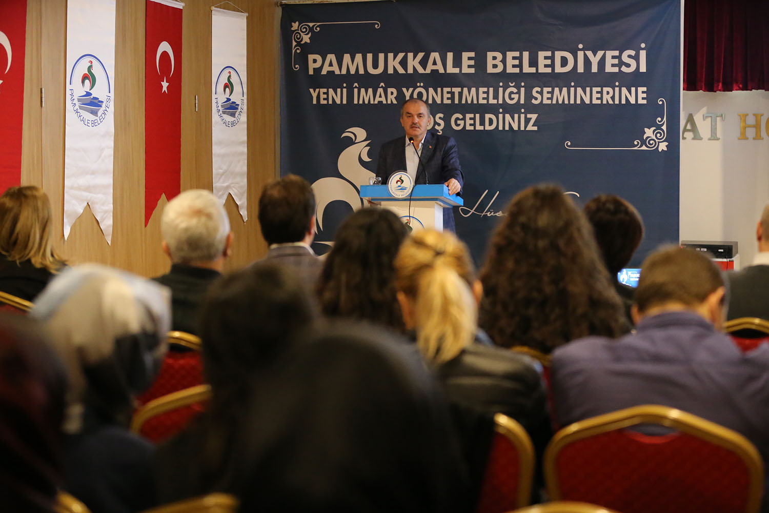 Pamukkale Belediyesi’nce organize edilen ve Grand İtimat Otel’de düzenlenen “Yeni İmar Yönetmeliği” seminerine, ilçe belediyeleri, mimarlar ve mühendisler yoğun ilgi gösterdi. İki gün süren seminere Pamukkale Belediye Başkanı Hüseyin Gürlesin’in de katılırken, konuşmacı olarak alanında uzman Türkiye Belediyeler Birliği Yapı Daire Başkanı Abdurrahman Keleş yer aldı.