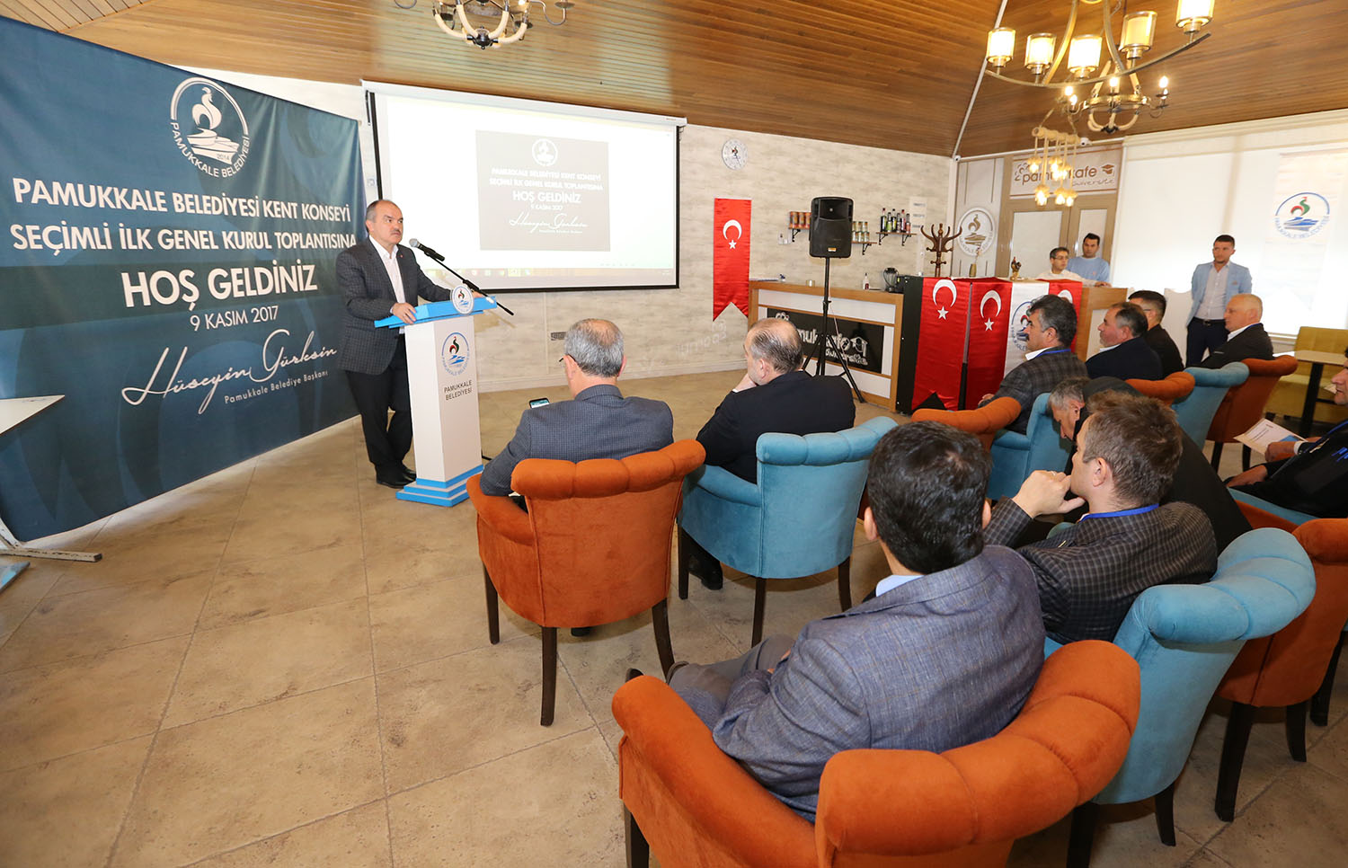 Pamukkale Belediyesi’nin Kınıklı Mahallesi’nde bulunan sosyal tesisi Pamuk Kafe’de gerçekleştirilen Pamukkale Belediyesi Kent Konseyi Seçimli İlk Genel Kurul Toplantısı’nda Yürütme Kurulu Başkanlığı’na Pamukkale Belediye Başkan Yardımcısı Adnan Kaya seçildi. “Vatandaş odaklı birçok çalışmamız var” diyen Pamukkale Belediye Başkanı Hüseyin Gürlesin, “Kanun gereği nüfusu 50 binin üzerinde olan kentlerde Kent Konseyi’nin kurulması zorunlu. Ancak birçok belediyede kent konseyi yok. Biz Pamukkale Belediyesi olarak Kent Konseyini kurarak, karar alma mekanizmasına dâhil ediyoruz. Kent Konseyi kuruldu desinler diye yapmayacağız. Bu anlamda kent konseyinin önemli bir görev yapacağını düşünüyorum. Kent Konseyinde görev alacak arkadaşlar ve delegelerle beraber belirli periyotlarla düzenleyecekleri toplantıları bizzat ben kendim takip edeceğim ve katılacağım ve halktan gelen konuları bu konsey vasıtasıyla çözüme kavuşturacağız. Bundan dolayı Kent Konseyi’nin önemli bir görev icra edeceğini düşünüyorum” dedi.