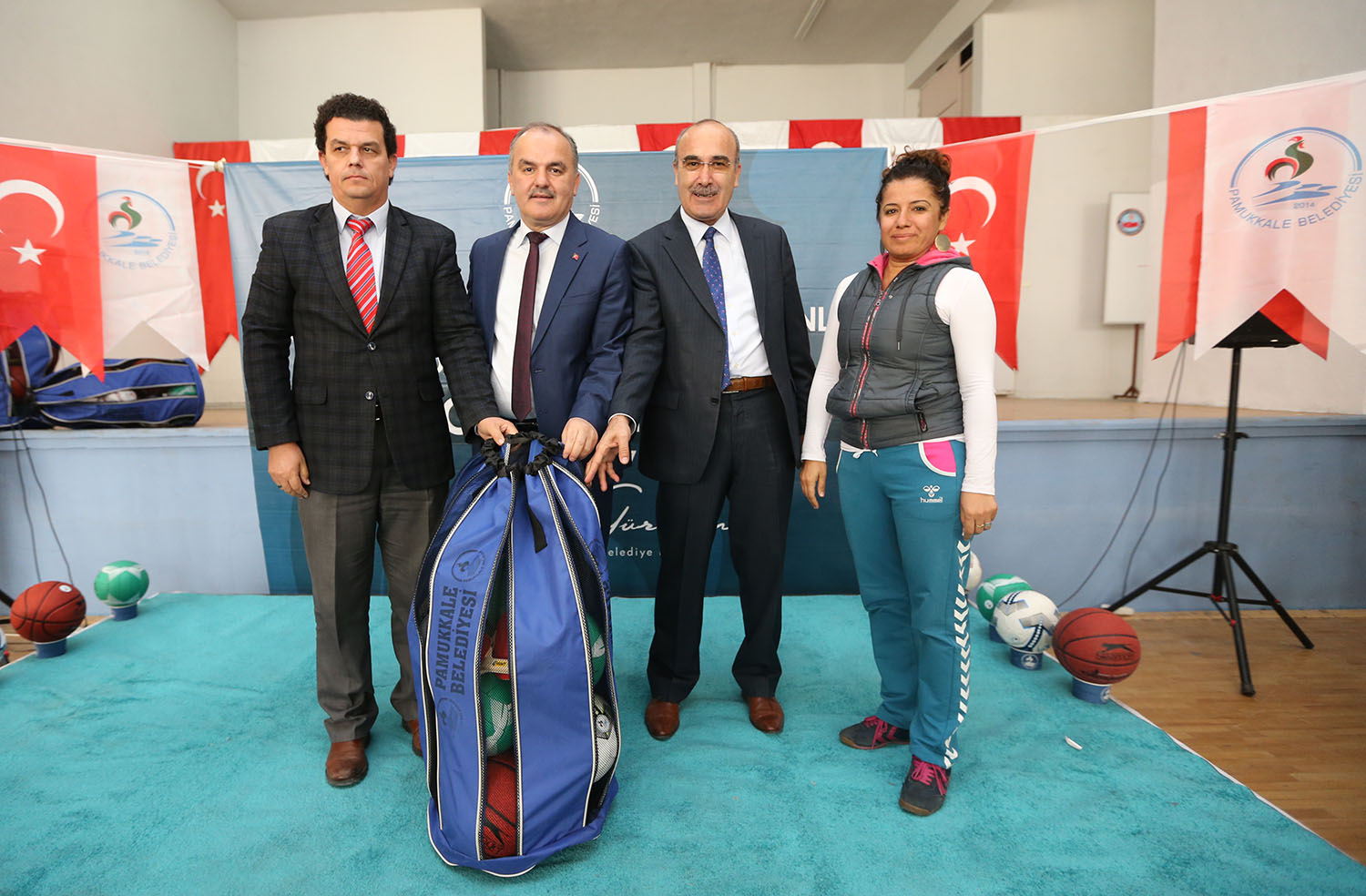 Eğitimde, sağlıkta, güvenlikte ve sosyal belediyecilikte öncü olmaya devam Pamukkale Belediyesi, ilçe sınırları içerisinde 132 okulun tamamına spor malzemesi desteği verdi. Pamukkale Belediye Başkanı Hüseyin Gürlesin, “Yaptığımız her çalışma ile eğitimde kaliteyi artırmayı hedefliyoruz. Gençlerimizin spor yapmasını desteklemek için malzeme yardımında bulunduk” dedi.
