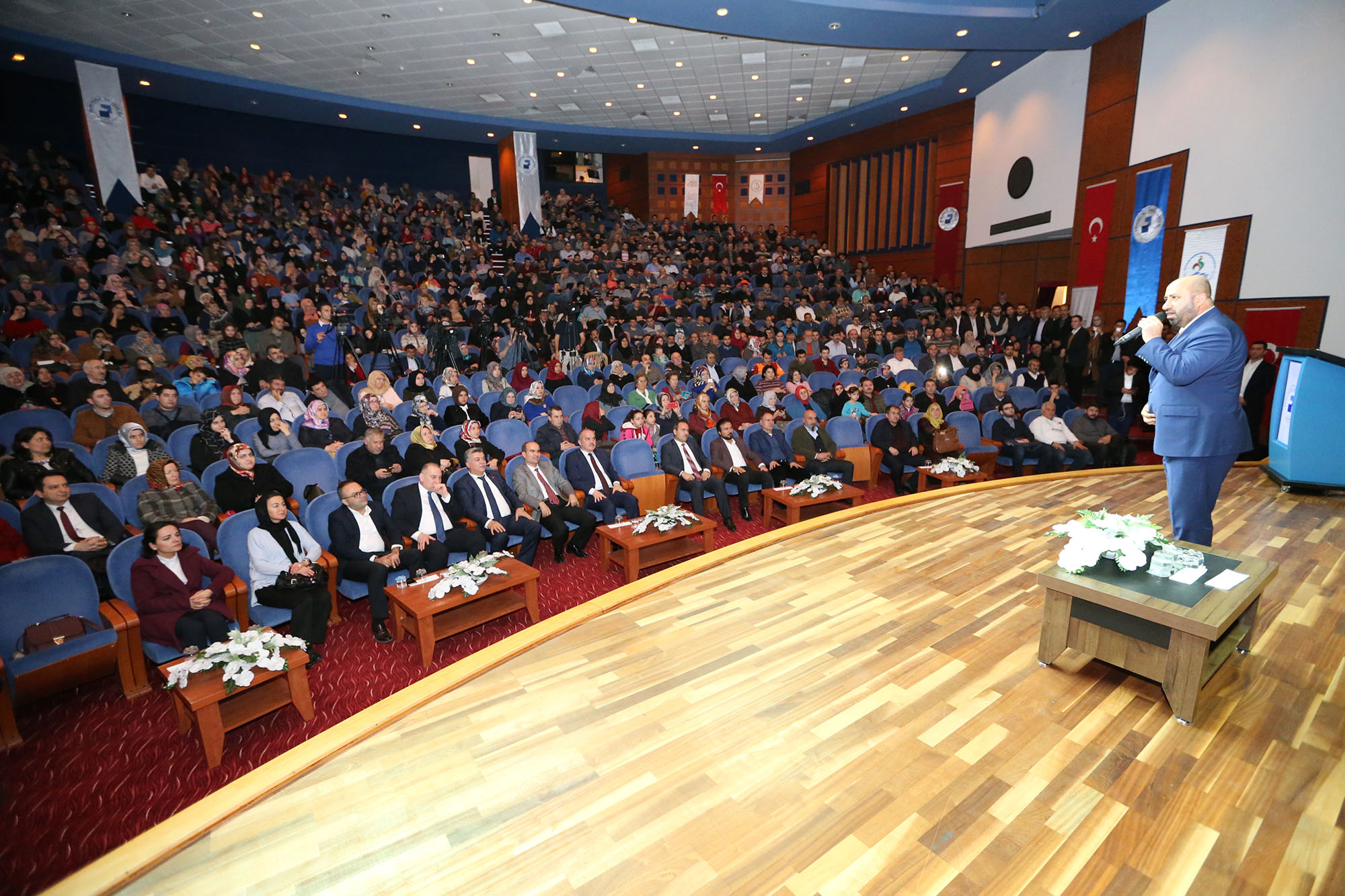 “Alemlere rahmet olarak gönderilen sevgili peygamberimizin doğum yıldönümü haftasında bulunuyoruz” diyen Pamukkale Belediye Başkanı Hüseyin Gürlesin, “Geleceğimiz dediğimiz gençlerimize sahip çıkmak adına Pamukkale Belediyesi olarak bizler de gerekeni yapıyoruz. Bu bağlamda vatandaşlarımızı Ömer Döngeloğlu hocamızla bir araya getirelim istedik. Bu geceyi düzenleyen ve bu salonu bize tahsis eden rektörümüze ve İlahiyat Fakültesi Dekanımıza da çok teşekkür ediyorum. Rabbim inşallah bu gecenin de hürmetine hayatımıza yansıtıp istifade edenlerden olmayı nasip eder. Ben tekrardan bu organizasyonun bu noktaya gelmesinde emeği geçen kim varsa hepsinden Rabbim ebediyen razı olsun diyorum ”dedi.