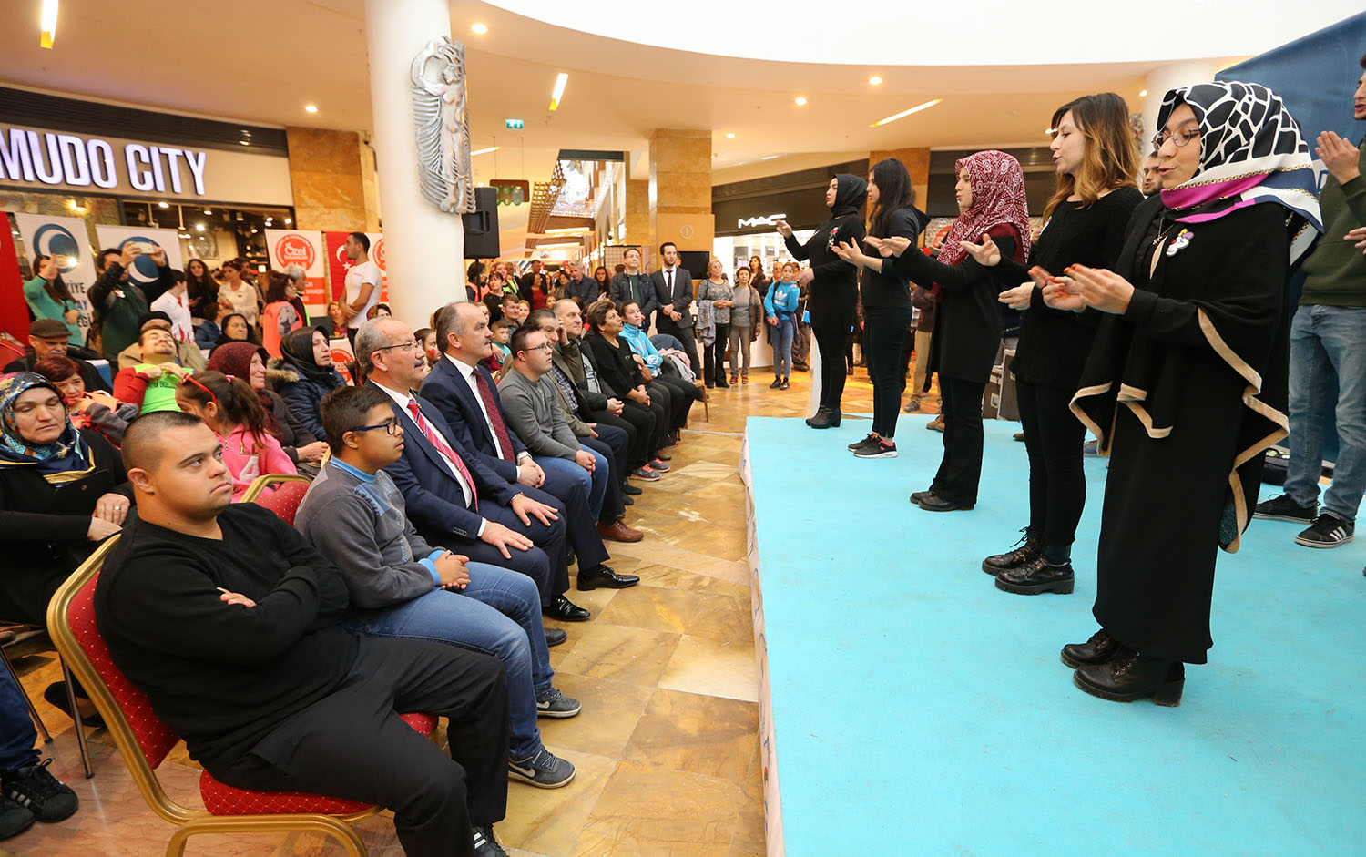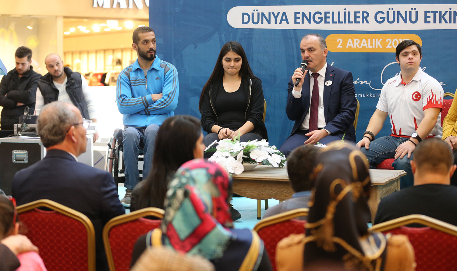 Yoğun katılımın olduğu “Dünya Engeliler Günü” etkinliği kapsamında bir de söyleşi düzenlendi. Söyleşi öncesi Denizli İşitme Engelliler Derneği gönüllülerinin oluşturduğu koro işaret diliyle “Hayat Bayram olsa” şarkısını söyledi. Bu performans büyük alkış aldı. Acıpayam Engeliler Derneği üyeleri Mehmet Ali Kaval ve İlknur Aydan, Denizli türküleri söyleyerek katılımcıları coşturdu. Pamukkale Belediye Başkanı Hüseyin Gürlesin ile birlikte Pamukkale Belediyespor Tekerlekli Sandalye Basketbol takımı sporcuları Meryem Tan, Fadi Aldaab ile Down sendromlu şampiyon yüzücü Tuğrul Şahin ve annesi Hatice Şahin ve İşitme Engelli basketbolcu Feyzanur Bal söyleşide yer aldı. Burada açıklamalarda bulunan Pamukkale Belediye Başkanı Hüseyin Gürlesin, farkındalık oluşturmak için bu etkinliği düzenlediklerini belirterek, “Kurulduğumuz günden bu yana her zaman engellilerin yanında olduk. Bazen tekerlekli sandalye, bazen baston, bazen de hasta yatağı desteğinde bulunduk. Tekerlekli sandalye basketbol takımını kurduk. Belediye meclisimizde 4 engelli arkadaşımız var. Engelliler konusunda kararlar alırken onların kararları bize yol gösterici oluyor. Bizler hepimizin birer engelli adayı olduğumuzu bilerek, engellilerin engellerini aşmak için çalışıyoruz. Biz bir çok konuda örnek bir belediye olduğumuzu düşünüyoruz” dedi. Down sendromlu şampiyon yüzücü Tuğrul Şahin ve annesi Hatice Şahin ve İşitme Engelli basketbolcu Feyzanur Bal yaşadıklarını anlatırken, Pamukkale Belediyesi’ne de teşekkür ettiler.