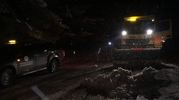 Kış soğuk yüzünü iyice gösterdi. Soğuk hava kent merkezinde hayatı olumsuz etkilerken yüksek kesimlerde kar yağışı etkisini artırdı. İki sınır mahallesi arasında 65 kilometrelik mesafe bulunan Pamukkale Belediyesi’nin yüksek kesimlerdeki mahallerinde de kar yağışı vardı. Pamukkale ilçe sınırları içinde yer alan yüksek rakımlı mahalleler Belenardıç, Uzunpınar, Gözler, Akdere, Haytabey Akçapınar, Kurtluca, Eymir ve Güzelpınar gibi mahallelerde Cumartesi akşam saatlerinde kar yağışı etkisini artırdı. Aynı şekilde Cankurtaran ve Karataş’ta da kar zaman zaman etkisini sürdürdü. Pamukkale Belediyesi ekipleri olası bir olumsuzluğa karşı hazırlıklı bekledi. Karın yüksek kesimlerde 10-15 cm’ye kadar yükselmesi ve yolların ulaşıma kapanma ihtimaline karşı harekete geçen Pamukkale Belediyesi Fen İşleri Müdürlüğü ekipleri 1 grayder, 2 tuzlama kamyonu ve 1 iş makinesi ve 10 kişi ile yoğun çaba harcadı. Gece boyunca Gözler, Uzunpınar, Kurtluca, Haytabey, Akçapınar, Eymir ve Güzelpınar mahallerinde aralıksız mesai yapan ekipler bu mahalleler arasındaki yolların açık kalmasını sağladı. Soğuk haça nedeniyle buzlanma da meydana gelirken, ekipler yolların açık olması için yoğun çaba harcadı. Olası bir kar yağışı ve olumsuzlukta ekipler hazır kıta olarak görev yapmaya hazır halde bekliyor. Pamukkale Belediye Başkanı Hüseyin Gürlesin, kışın sert yüzünü gösterdiği bu günlerde kar yağışının yüksek mahallelerde etkili olduğunu ifade ederek, “Pamukkale ilçesinin iki mahalle arasında 65 kilometre var. Bu mesafe Cankurtaran ile Gözler arasında. Cankurtaran, Karataş, Uzunpınar, Gözler, Akçapınar, Kurtluca ve Güzelpınar gibi mahallelerde kar etkili oldu. Ekiplerimiz bu bölgelerde kar nedeniyle kapanma tehlikesine karşılık olarak yoğun mesai harcadı. Cumartesi gecesi 21.00’den Pazar sabah 11.00’e kadar ekiplerimiz hiç ara vermeden yolların açık kalması için çaba harcadı. Bu bölgelerde kar yüksekliği 10-15 cm’ye ulaştı. Ama ilçe genelinde yollarımız açık, Ekiplerimiz her türlü olumsuzluk için hazır kıta bekliyor, Pamukkale Belediyesi ekipleri gece-gündüz, yaz-kış demeden halkımızın rahatı için çalışmalara devam ediyoruz” dedi.