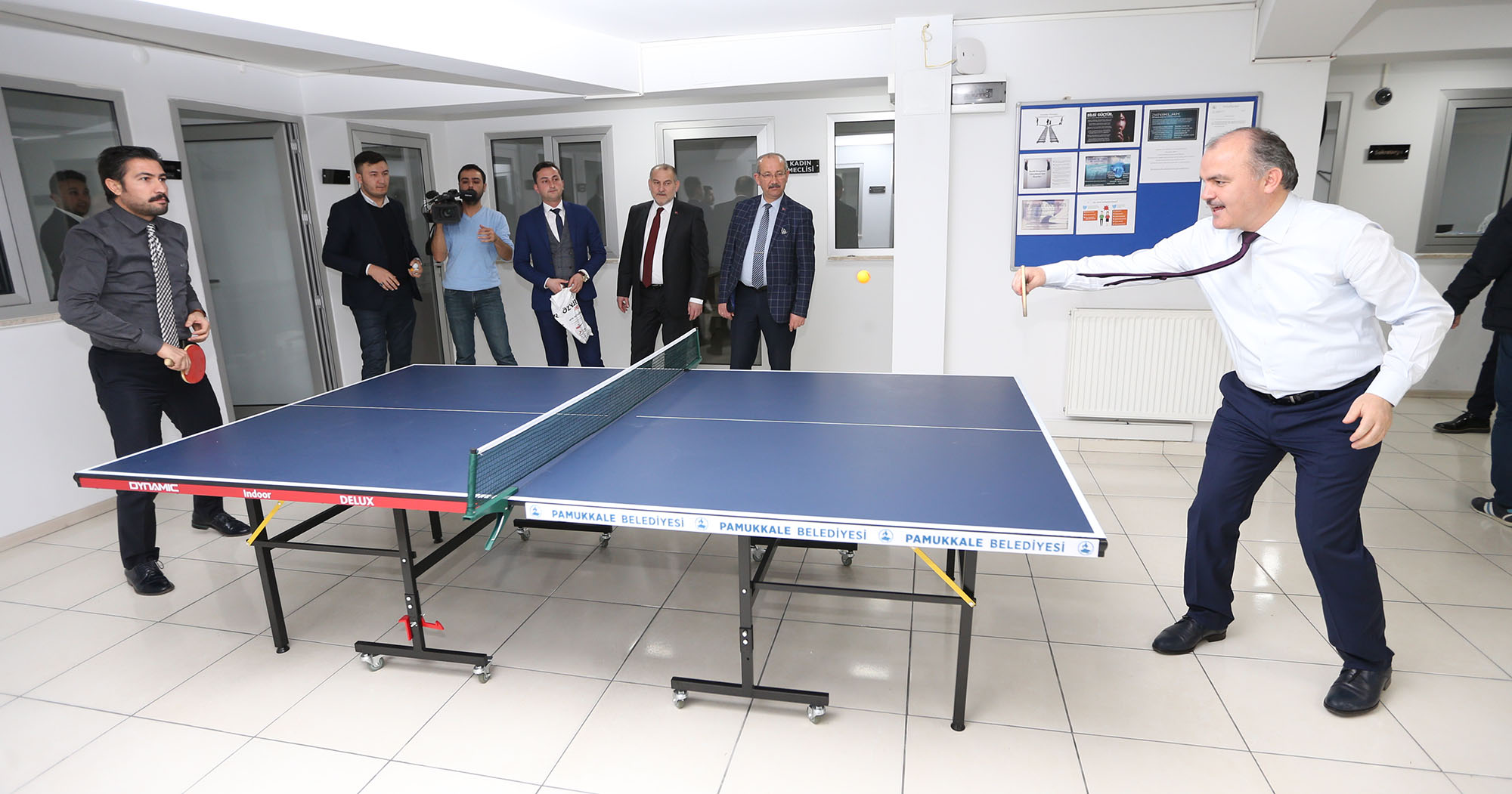 Kart dağıtımının ardından Milletvekili Özkan, Başkan Gürlesin ile makamında görüştü. Yapılan çalışmalar hakkında detaylı bilgiler alan Milletvekili Özkan, belediye çalışanları da ziyaret etti. Pamukkale Belediyesi Eki Hizmet Binası’nda bulunan masa tenisini gören Milletvekili Özkan ve Başkan Gürlesin, kozlarını paylaştı. Kısa süren müsabakada hem Gürlesin hem de Özkan’ın performansı dikkat çekti.