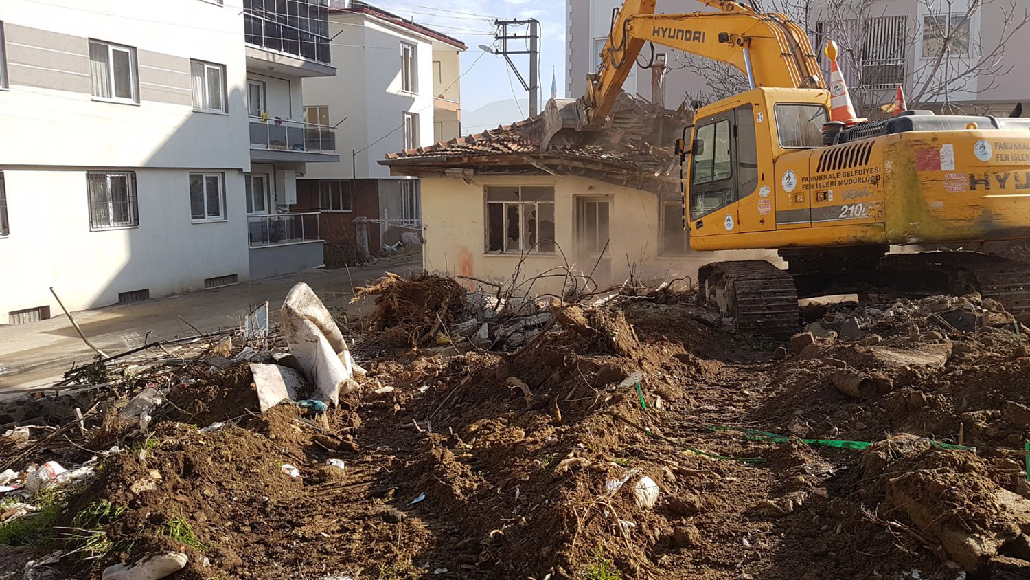 Pamukkale Belediyesi, ilçe sınırları içerisinde bulunan, emniyet ve sağlık açısından risk oluşturan metruk binaların yıkımını gerçekleştirmeye devam ediyor. Pamukkale Belediye Başkanı Hüseyin Gürlesin, “Mahallelerimizde vatandaşlarımızın için emniyeti açısından tehdit oluşturan metruk binaları gerekli mercilerden izin aldıktan sonra yıkımını gerçekleştiriyoruz” dedi.