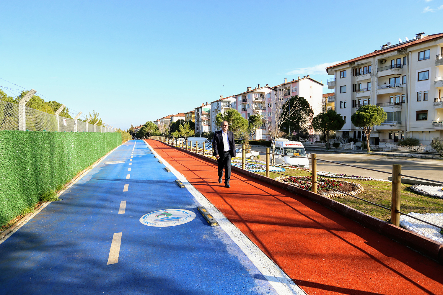 Eğitimden sağlığa, güvenlikten sosyal belediyeciliğe ve turizme kadar her alanda öncülük eden Pamukkale Belediyesi, bisiklet ve yürüyüş yolu ağını ilçenin her noktasında yaygınlaştırmaya devam ediyor. Çamlık Bölgesi’ndeki bisiklet yolu ve yürüyüş yolunun birinci etabını tamamlayan Pamukkale Belediyesi, ikinci etabı için hazırlık çalışmalarına başladı. Pamukkale Belediye Başkanı Hüseyin Gürlesin, “Kınıklı Mahallemizde askerlik şubesinin yanında askeri bölge olan ormanlık alana bitişik yerde 450 metrelik bisiklet yolu ve yürüyüş yolumuzu tamamladık. Basketbol sahasıyla başladığımız çalışmalarımız, tamamen doğal ortama uygun olarak her bir ayrıntısını tamamladık” dedi.