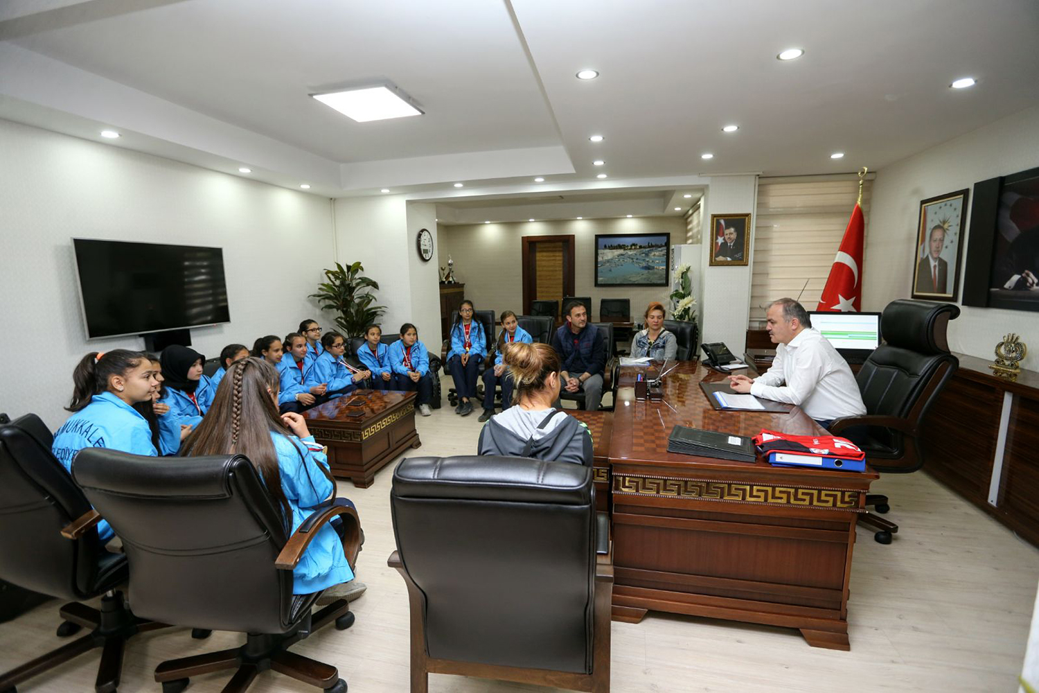 Pamukkale Belediyesi’nin eğitime verdiği destekler sonuç vermeye devam ediyor. Küçükler Hentbol İl Birinciliği’nden vize alan ve gruplara giden Hacı İbrahim Cin Ortaokulu Kız Hentbol Takımı sporcuları manevi destek veren Pamukkale Belediye Başkanı Hüseyin Gürlesin’i ziyaret ederek teşekkür ettiler. Başkan Gürlesin, “Yerel bir yönetici olarak eğitimden spora her alanda gençlerimizin desteklemeye devam edeceğiz” dedi.