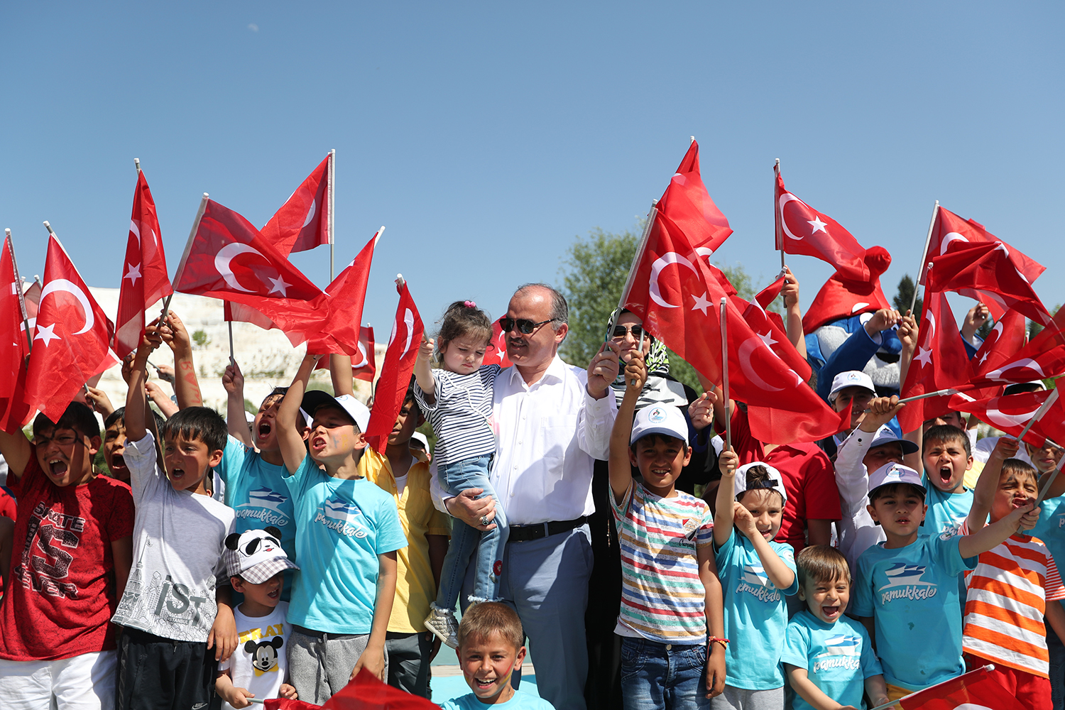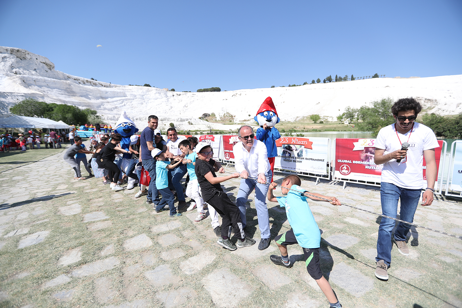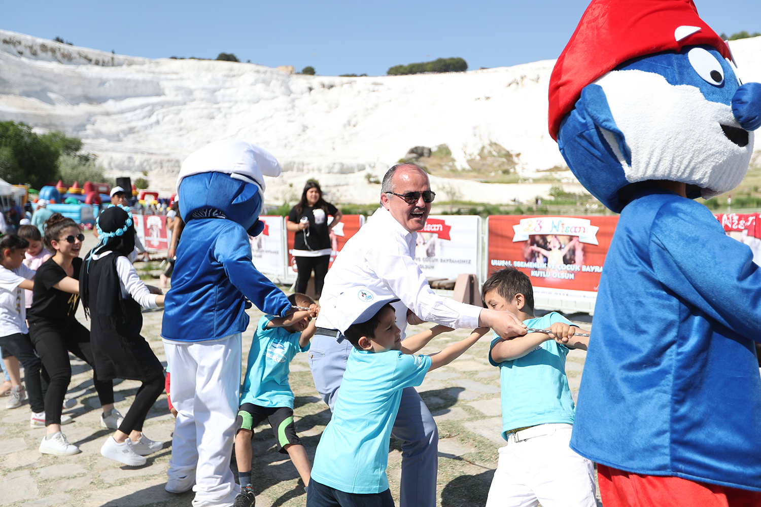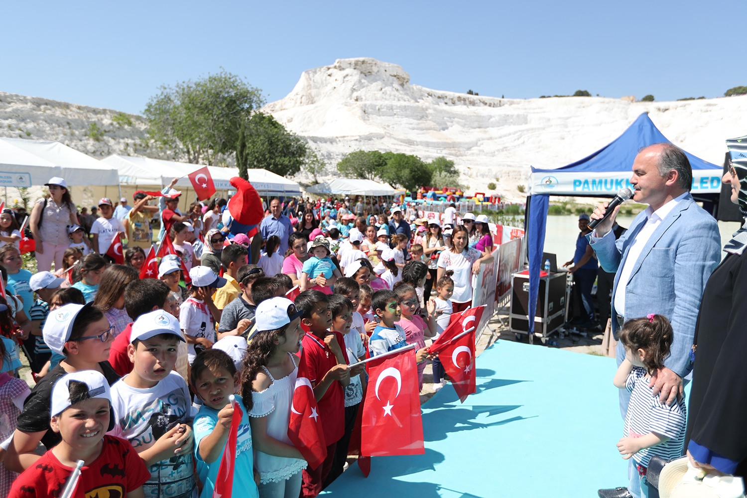 Eğitimden sağlığa, spordan kültüre, sosyal belediyeciliğe birçok alanda öncülük eden Pamukkale Belediyesi, farkını hissettirmeye devam ediyor. 23 Nisan Ulusal Egemenlik ve Çocuk Bayramı nedeniyle 2500’e yakın vatandaşı Kocaçukur’daki etkinliklerde buluştu. Gün boyu süren etkinlikler kapsamında, çeşitli oyun gruplarında anne babaları ve öğretmenleriyle birlikte gönüllerince eğlenen çocuklar, 23 Nisan’ı bayram tadında geçirdiler.