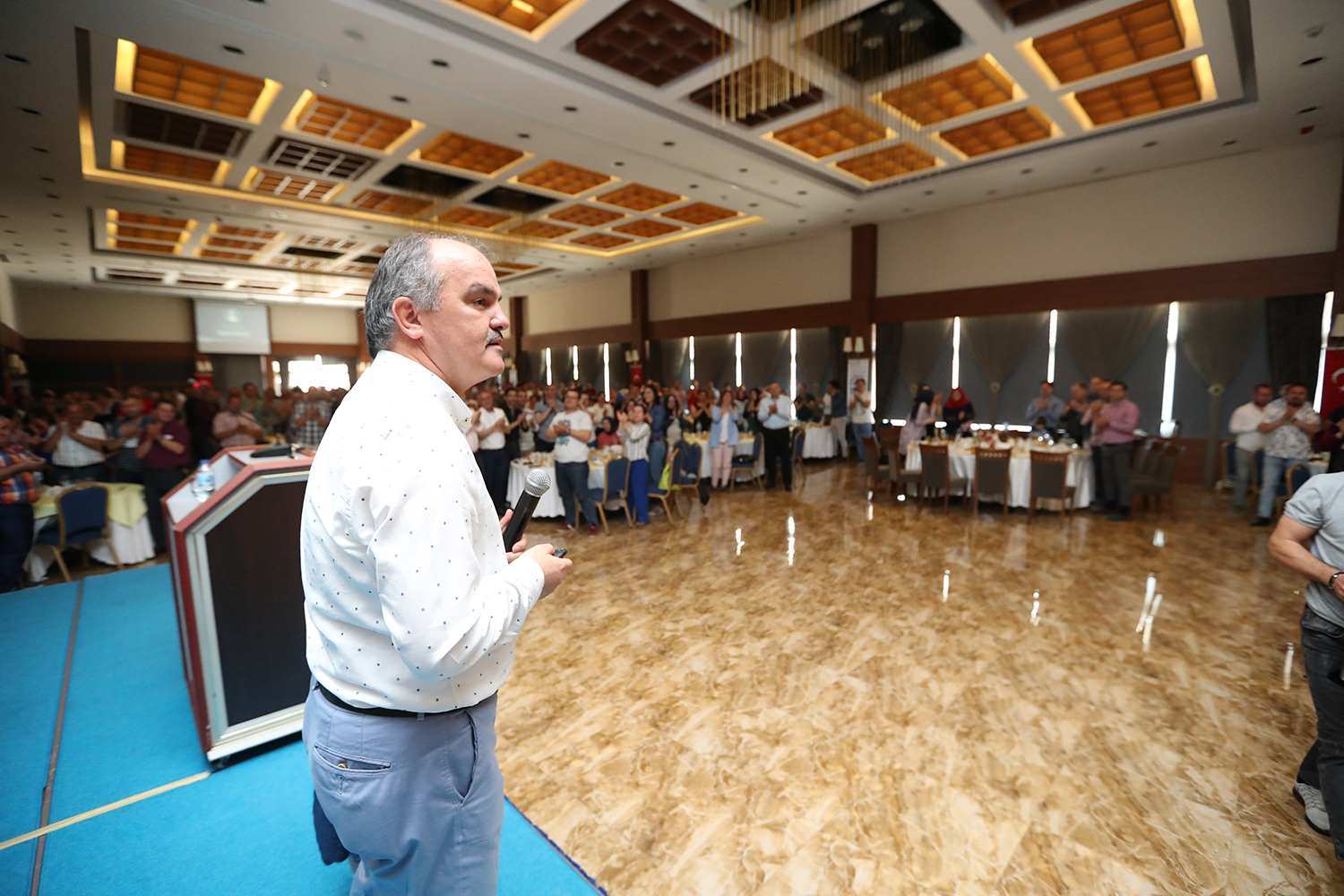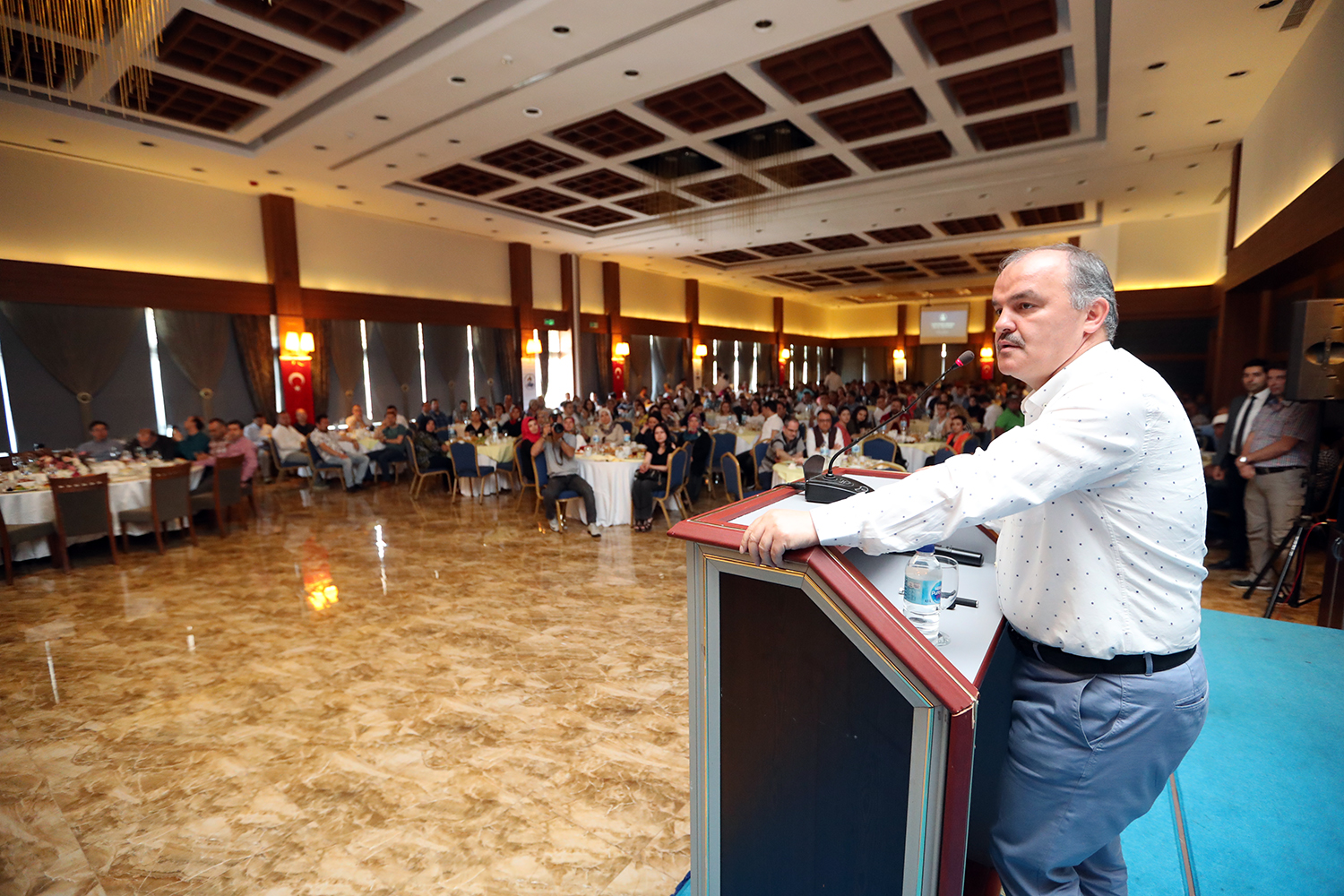 “Biz büyük bir aileyiz” diyen Pamukkale Belediye Başkanı Hüseyin Gürlesin, yaklaşık bin kişilik Pamukkale Belediyesi ailesi ile Denizli’nin en büyük ilçesine hizmet verildiğini söyledi. Başkan Gürlesin, “En büyük ilçenin kurucu belediye başkanı olarak başta şahsım, belediye başkan yardımcılarım, belediye meclis üyelerimiz, müdürlerimiz, memurlarımız, işçilerimiz, taşeron olarak nitelenen emekçi arkadaşlarımız bu işin en önemli parçalarıyız. Denizli’nin gerçekten en önemli bölgesinde hele de turizmle anılan bir bölgesine hizmet veriyoruz. Bana göre çok zorlu ama karşılığı verilirse de çok büyük bir hizmet verme imkânı olan bölgedeyiz. Allah’ın izniyle de başarılı işler yapmaya devam edeceğiz. Bunu hep birlikte başaracağız. Sadece Hüseyin Gürlesin olarak değil, bu çalışma ortamında bir ve beraber olarak bu bölgenin en iyi noktaya gelmesi için inşallah sizlerle el ele, gönül gönüle vererek bugüne kadar olduğu şekliyle de bundan sonrada bu başarıyı taçlandırmaya devam edeceğiz. Biz kendimizden emin olalım. Başaramayacağımız hiçbir şey yok” diye konuştu.