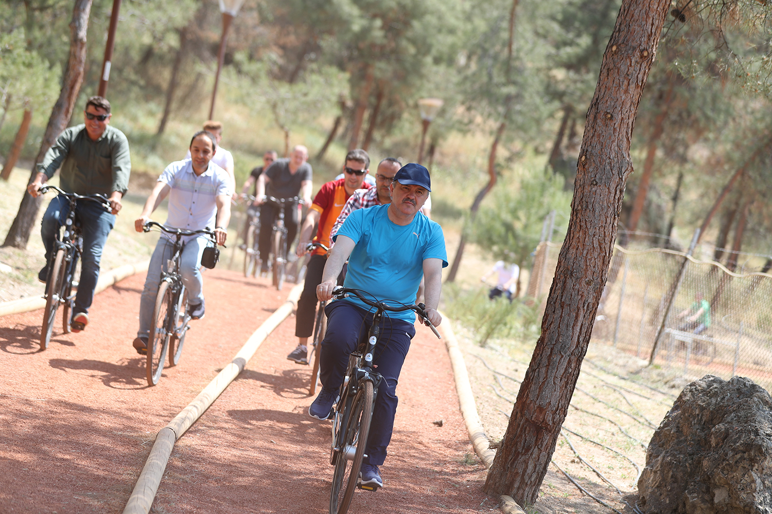 Pamukkale Belediye Başkanı Hüseyin Gürlesin, personeliyle bir araya geldiği kahvaltı da, 4 yıldır ilçede gerçekleştirdikleri projeleri değerlendirerek, yeni projeler hakkında bilgiler aktardı. Başkan Gürlesin ve personel, kahvaltı sonrasında, turizm bölgesi ve Denizli için geleceğe yatırım olan projelerden biri olan Karahayıt Kent Ormanı çevresinde ki bisiklet ve yürüyüş yolunda bisiklet turu atarak günü tamamladılar.