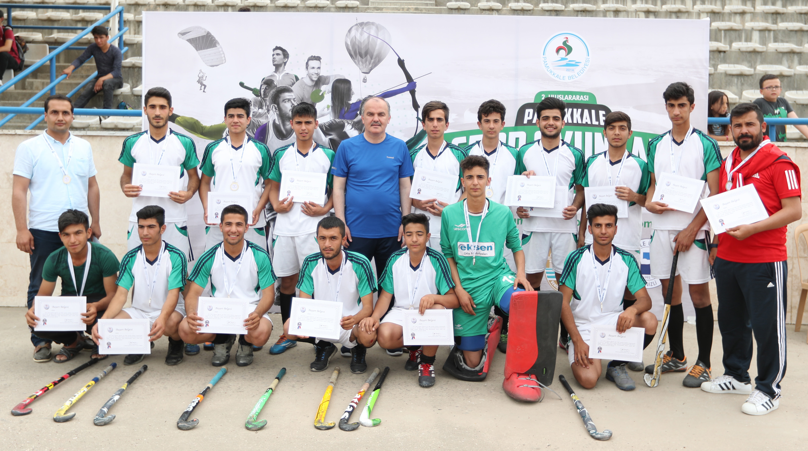 “2. Uluslararası Pamukkale Spor Oyunları” PAÜ’de cumartesi günkü müsabakalarla devam etti. PAÜ Spor Salonu’nda taekwondo müsabakalarına ev sahipliği yaparken, Çadır Spor Salonu’nda masa tenisi, açık tenis kortlarında 3x3 basketbol turnuvası, KYK sahası da Denizli’de ilk kez çim hokeyi turnuvasına sahne oldu. Pamukkale Belediye Başkanı Hüseyin Gürlesin, turnuvalarda dereceye giren sporculara ödüllerini düzenlenen törenlerle verdi. Ayrıca gün boyu sosyal etkinlik alanında, ok atışlarından sanal gerçek oyun standlarına Yine aynı gün Pamukkale’de 7. Futbol Şöleni İlkbahar 2018 Halı Saha Futbol Turnuvası’nın final maçı oynandı ve rakibi İstiklal Dost İstiklalgücü’nü 6-4 yenen Zümrüt Zeytinköy Zümrütspor şampiyon oldu. Turnuvada dereceye giren takımlara ödülleri ve kupaları törenle verildi.