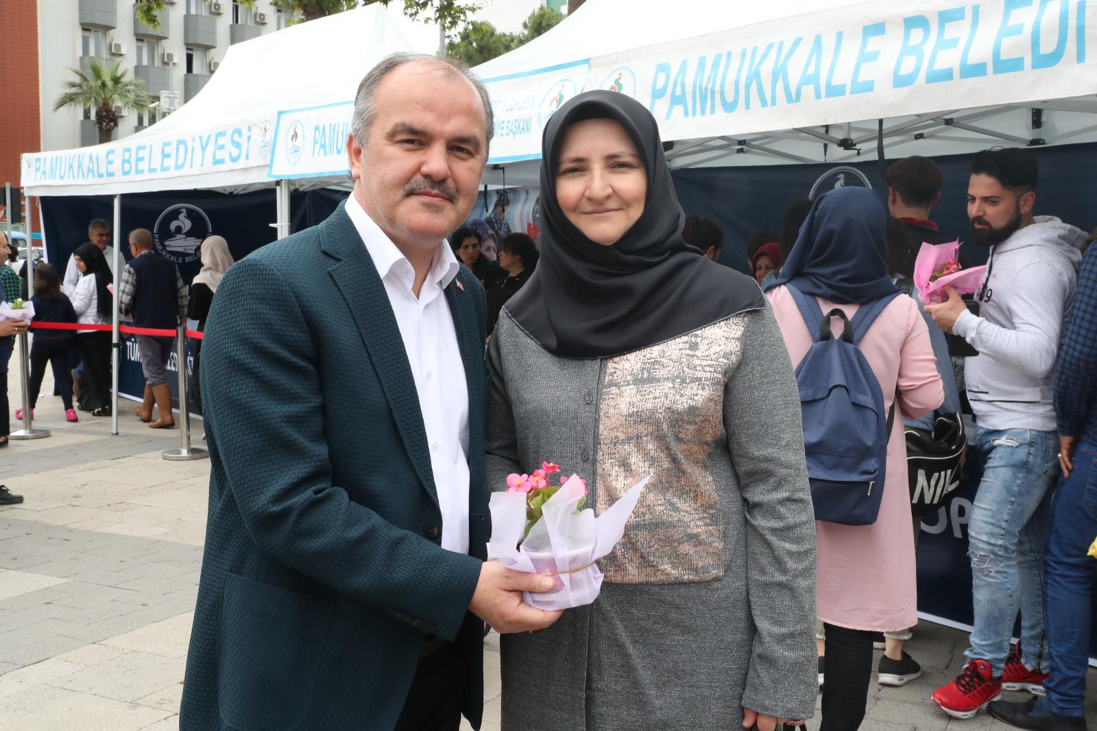Her yıl Mayıs ayının ikinci Pazar günü kutlanan Anneler Günü ile ilgili olarak Pamukkale Belediye Başkanı Hüseyin Gürlesin, annelere çiçek dağıttı. Ak Parti Pamukkale İlçe Başkanı Uğur Gökbel ve Ak Parti Pamukkale İlçe Kadın Kolları Başkanı Zehra Karabay ve Başkan Gürlesin’in eşi Derya Gürlesin açılan standtta Denizlili kadınlara “Küçük hanım” adlı saksı çiçeği dağıtarak bayanların anneler gününü kutladı. Açılan standa büyük ilgi gösteren vatandaşlara Başkan Gürlesin ve eşi birlikte çiçek dağıttı. Ak Parti Pamukkale İlçe Kadın Kolları Başkanı Zehra Karabay, yaptığı açıklamada Anneler Günü ile ilgili olarak Pamukkale Belediyesi’nin etkinliği olduğunu belirterek, “Tüm annelerimizi anneler gününü kutluyoruz. Her kadın bir çiçektir diyerek anneleri unutmayan Başkan Gürlesin’e teşekkür ederim” dedi. Denizlili bayanlar ise Başkan Gürlesin’in anneler günü çiçeği ile ilgili olarak, “Anneleri unutmayan Başkan Gürlesin’e teşekkür ediyoruz” diyerek memnuniyetlerini dile getirdiler.
