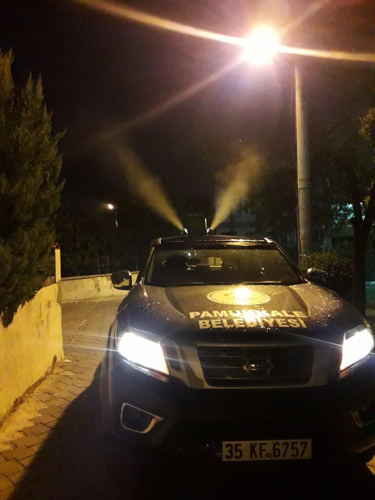 PAMUKKALE’DE İLAÇLAMA GECE GÜNDÜZ DEVAM EDİYOR