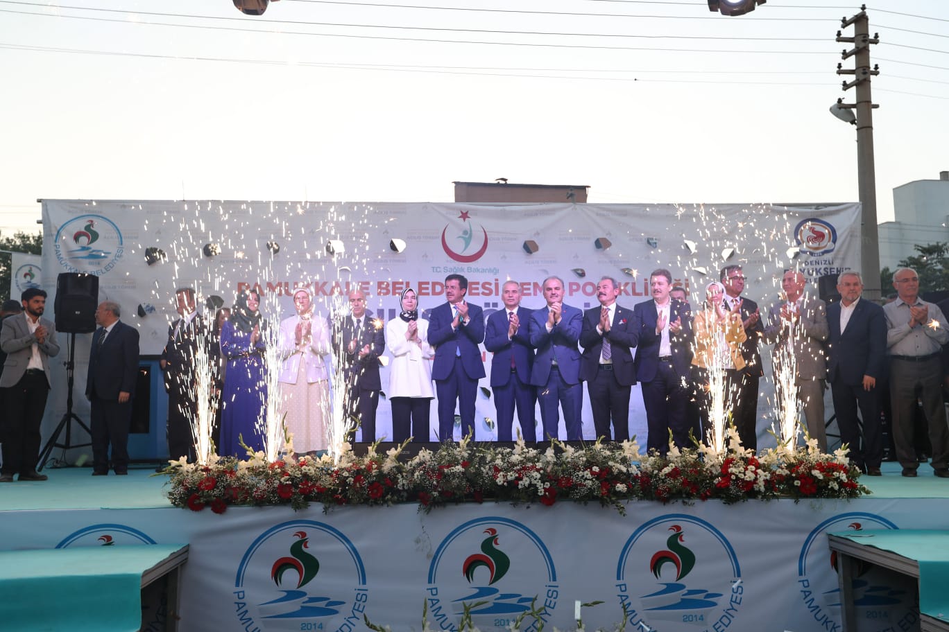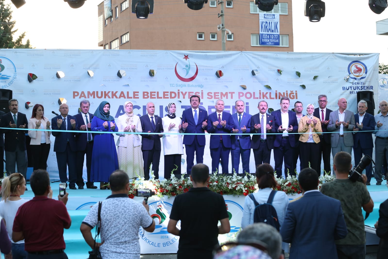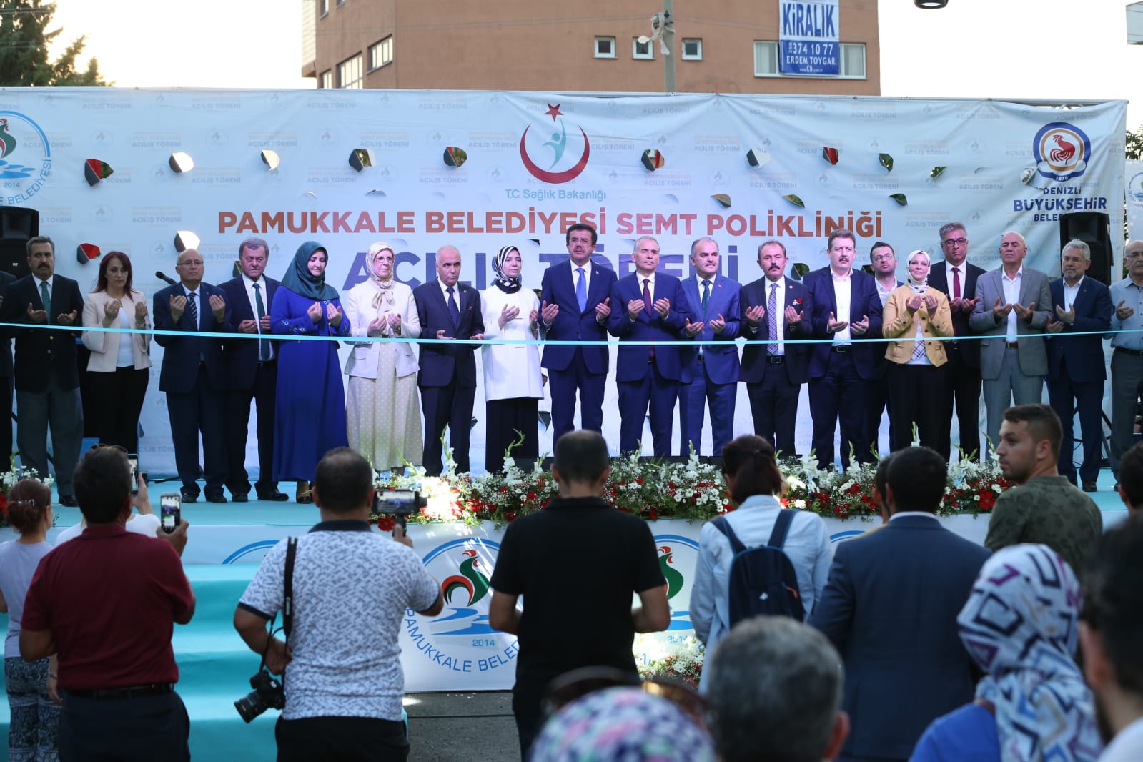 Ekonomi Bakanı Nihat Zeybekci, açılışta yaptığı konuşmada Pamukkale Belediye Başkanı Hüseyin Gürlesin’in halkın derdiyle dertlendiğine dikkat çekerek, “Bugün bu muhteşem eser ortaya çıktıysa başta Hüseyin Gürlesin ‘Bana ne’ dememesindendir. Halk için yapılması gereken ne varsa yapmak için 21 milyon lira harcayarak bu eserin ortaya çıkmasını sağlayan Başkan Gürlesin gönlünün güzelliğini bu eserlere yansıttı. 1,5 yılda hizmete girmesinde bizim Ankara’da, çok değerli arkadaşlarımızın burada büyük emekleri oldu. Bunların hepsi vatandaşlarımızın sağlıklarına kavuşması için. Bu tür eserler bir anlamda sadaka gibidir. Kullanıldıkça hayır dua devam eder. Bir kez daha bu dev sağlık yatırımının hayırlı olmasını dilerim” dedi. Konuşmanın ardından Pamukkale Belediyesi Semt Polikliniği’nin açılış kurdelesi protokol üyeleri tarafından dualarla kesildi. Protokol üyeleri daha sonra dev sağlık yatırımını inceledi. Pamukkale Belediyesi, açılış ile birlikte 5 bin kişinin katıldığı iftar yemeği de düzenledi.