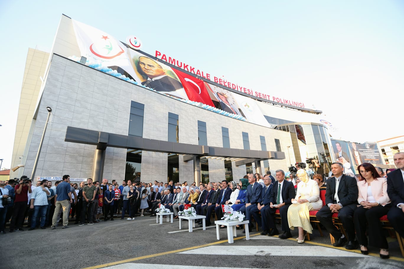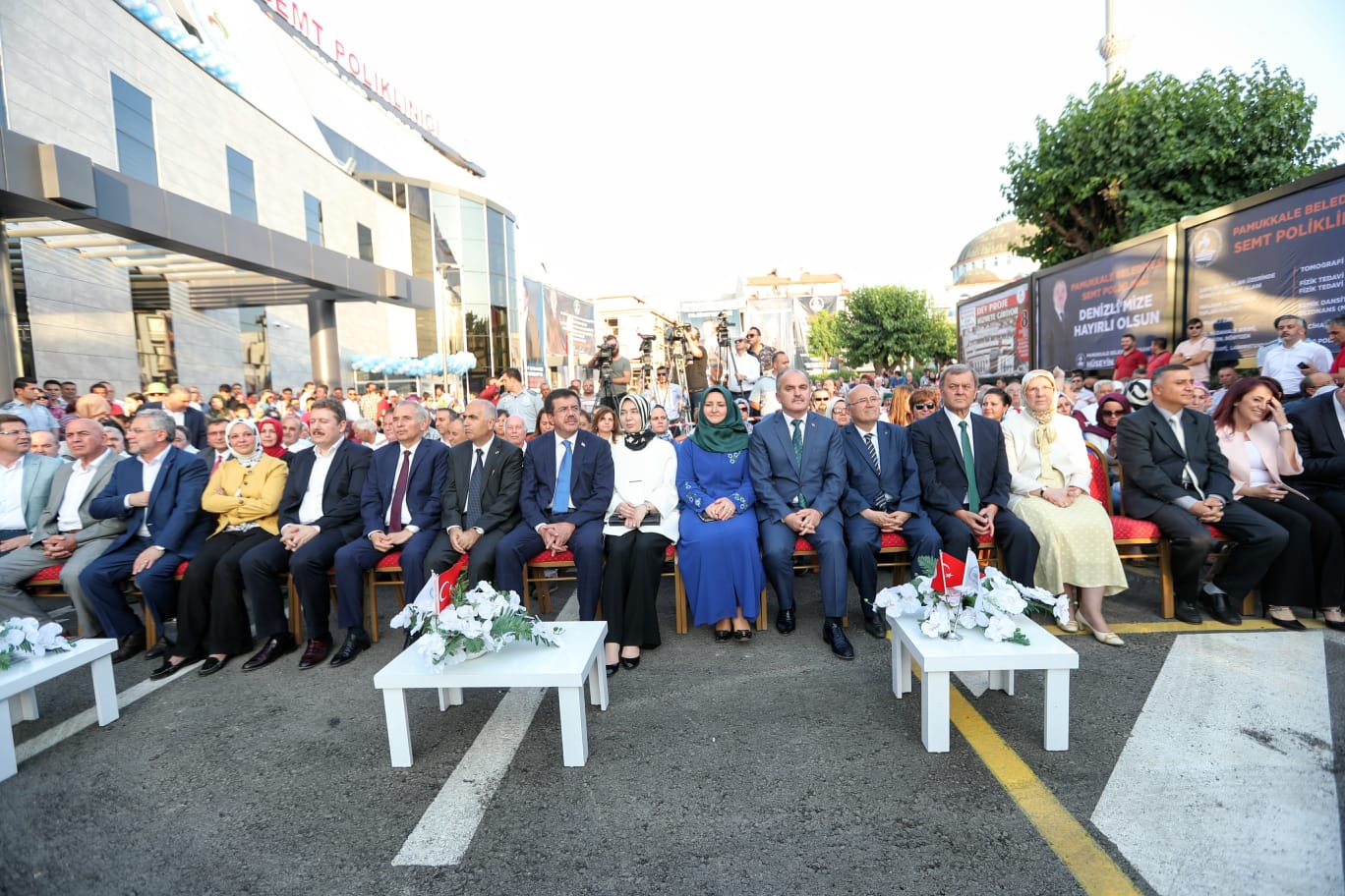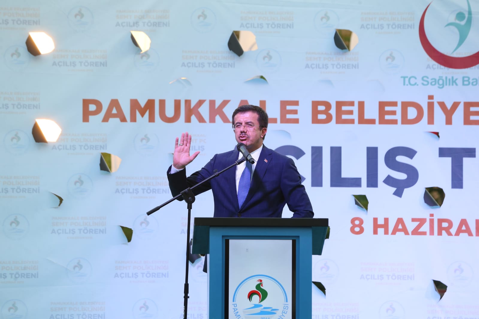 Ekonomi Bakanı Nihat Zeybekci, açılışta yaptığı konuşmada Pamukkale Belediye Başkanı Hüseyin Gürlesin’in halkın derdiyle dertlendiğine dikkat çekerek, “Bugün bu muhteşem eser ortaya çıktıysa başta Hüseyin Gürlesin ‘Bana ne’ dememesindendir. Halk için yapılması gereken ne varsa yapmak için 21 milyon lira harcayarak bu eserin ortaya çıkmasını sağlayan Başkan Gürlesin gönlünün güzelliğini bu eserlere yansıttı. 1,5 yılda hizmete girmesinde bizim Ankara’da, çok değerli arkadaşlarımızın burada büyük emekleri oldu. Bunların hepsi vatandaşlarımızın sağlıklarına kavuşması için. Bu tür eserler bir anlamda sadaka gibidir. Kullanıldıkça hayır dua devam eder. Bir kez daha bu dev sağlık yatırımının hayırlı olmasını dilerim” dedi. Konuşmanın ardından Pamukkale Belediyesi Semt Polikliniği’nin açılış kurdelesi protokol üyeleri tarafından dualarla kesildi. Protokol üyeleri daha sonra dev sağlık yatırımını inceledi. Pamukkale Belediyesi, açılış ile birlikte 5 bin kişinin katıldığı iftar yemeği de düzenledi.