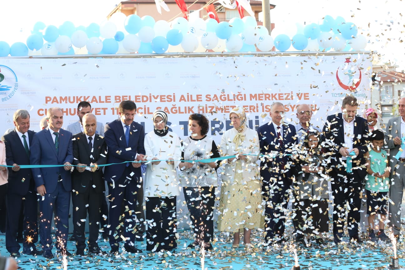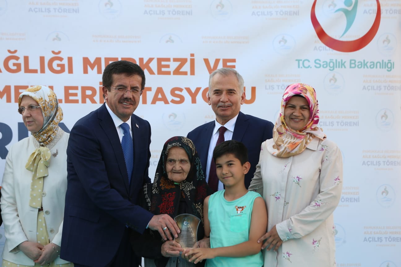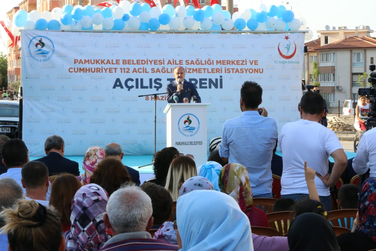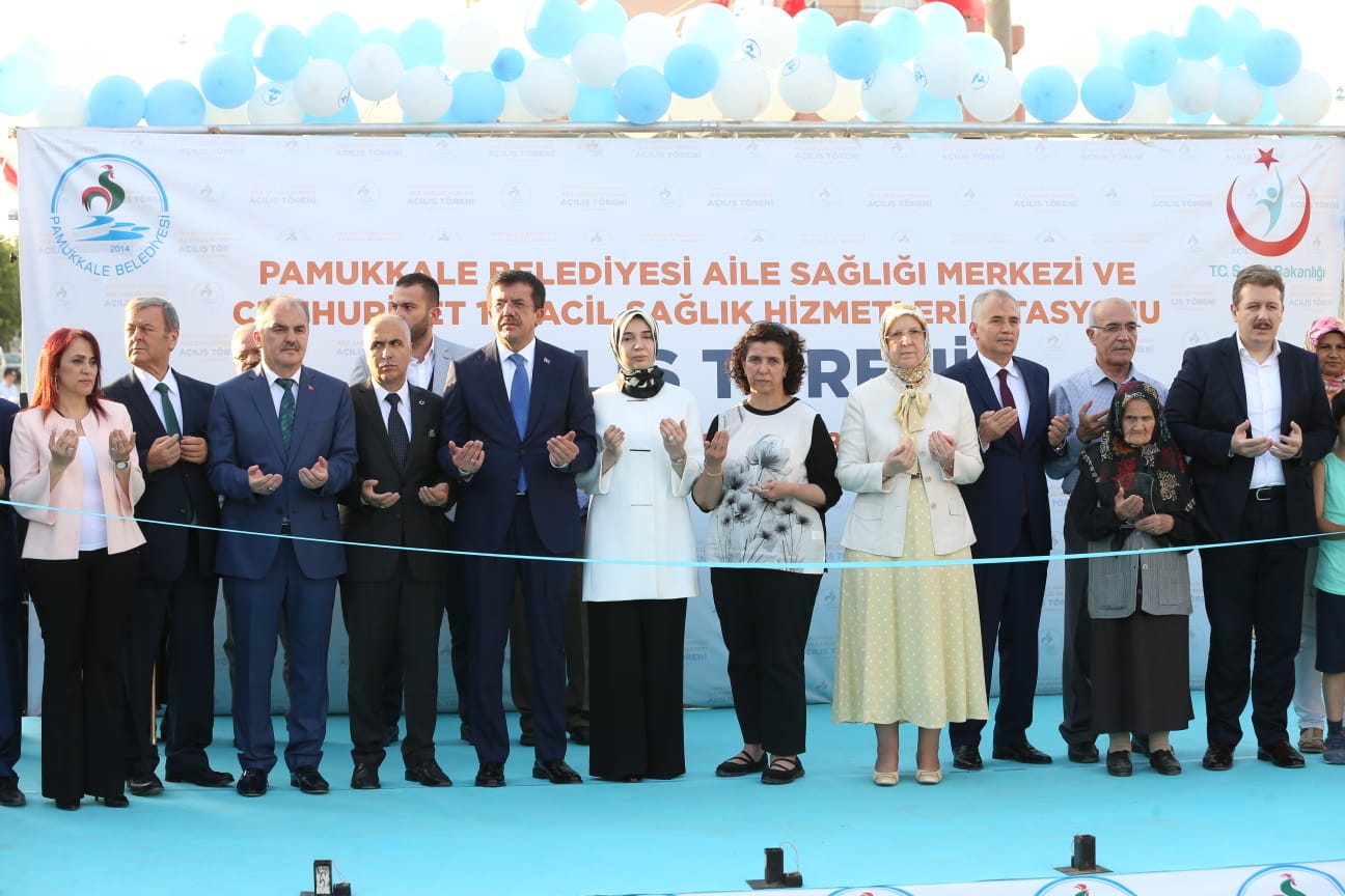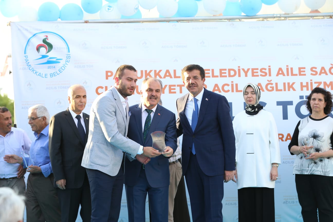 Ekonomi Bakanı Nihat Zeybekci ise Pamukkale Belediyesi’nin bu sağlık tesisi için verdiği emeğe dikkat çekerek, “Belediye başkanımız Hüseyin Gürlesin, halkın derdiyle dertlendiği için bu eserleri ortaya çıkarıyor. Halka hizmet aşkıyla çalışan Hüseyin Gürlesin Başkanıma ve ekibine bu sağlık tesisi için ne kadar teşekkür etsek azdır. Hayırseverlerle el ele vererek 100 bin insanımızın faydalanacağı bu sağlık merkezinin halkımıza şifa vermesini dilerim. Türkiye sağlıkta çığır açtı ve bu eserlerle bu pekişmiş oluyor” dedi. Konuşmanın ardından Cumhuriyet 112 Acil ve ASM’nın yerini bağışlayan hayırseverler Müşerref Aktaş, Galip Güz, Hanife Tara, Mehmet Ali Etiz, Hikmet Künar, Hacer Bozbay, Kenan Bozbay, Hüseyin Zeren, Safiye Dermenci, Yusuf Karaşın, Hasan Dermenci ve İbrahim Muammer Evranoğlu ile projenin çizimin ücretsiz olarak yapan Ferhat Demirten’e teşekkür plaketleri verildi. Daha sonra Cumhuriyet 112 Acil ve Aile Sağlığı Merkezi’nin açılış kurdelesi protokol üyeleri tarafından kesildi.