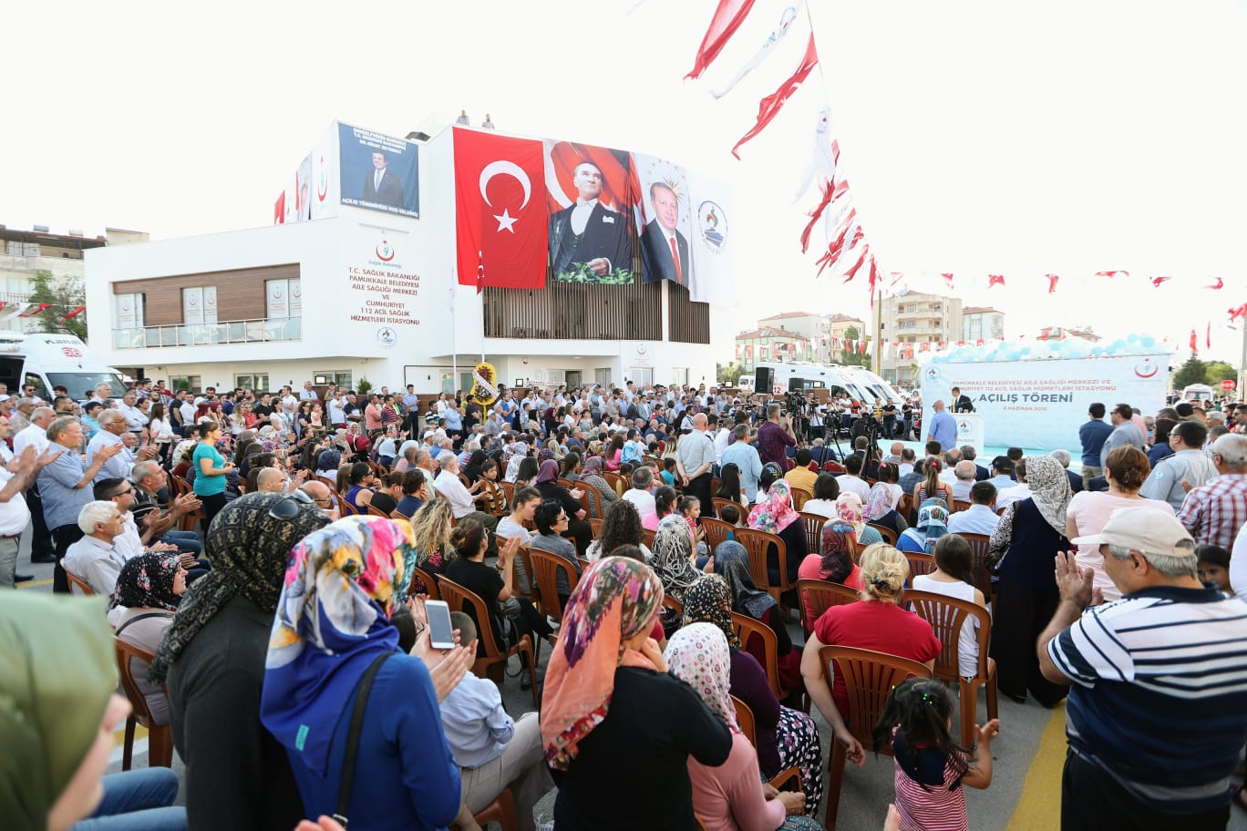 “Kurulduğumuz 2014 yılında bu mahalleye geldiğimizde bizden 3 şey istendi” diyen Başkan Gürlesin, “Bunlardan biri sağlık ocağı, diğeri altyapı ve üstyapı sonuncusu da kapalı pazaryeri. Biz bunlardan en önemlisinin sağlık olduğunu düşünerek ilk önce 1.5 milyon lira harcayarak bu tesisi açtık. Bu bölgedeki 100 bin insanımızın kullanacağı bu sağlık merkezinin şifa dağıtmasını umarım. 112 Acil Servis ile Aile Sağlığı Merkezi’nin en büyük bağışçısı 84 yaşındaki Müşerref Aktaş başta olmak üzere tüm hayırseverlerimize teşekkür ediyorum. Alt ve üst yapı ve kapalı pazaryeri de bu dönem sonuna kadar gerçekleşmiş olacak” dedi. Denizli Büyükşehir Belediye Başkanı Osman Zolan ise Pamukkale Belediyesi’ne teşekkür ederek, “Bu önemli tesise imza atan Başkan Gürlesin’e teşekkür ediyorum. Bir taraftan Pamukkale Belediyesi bir taraftan biz Cumhuriyet Mahallesi’nin daha da güzelleşmesi için çalışmaya devam ediyoruz” dedi. Vali Hasan Karahan ise Cumhuriyet Mahallesi’nde güzel bir eserin ortaya çıktığının altını çizerek, “1 yıldır Denizli’deyim. Hep güzel şeyleri yaşadık. Pamukkale Belediyesi büyük özveri ile böyle bir sağlık merkezi ortaya çıkardı. Biz de Sağlık Bakanlığı’ndan 2 ambulansla bu tesise destek sağladık” diye konuştu.