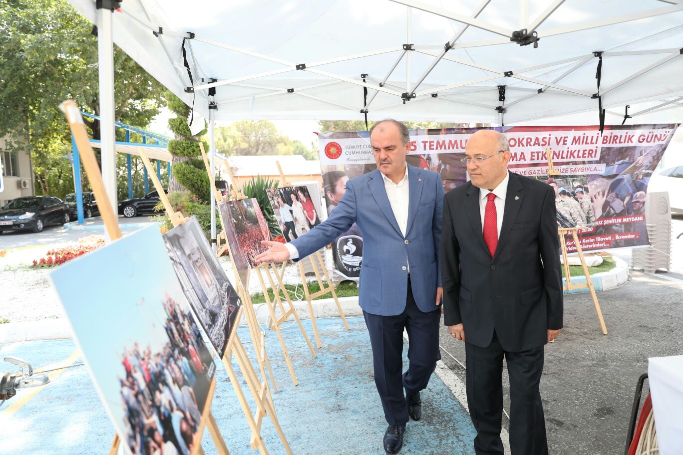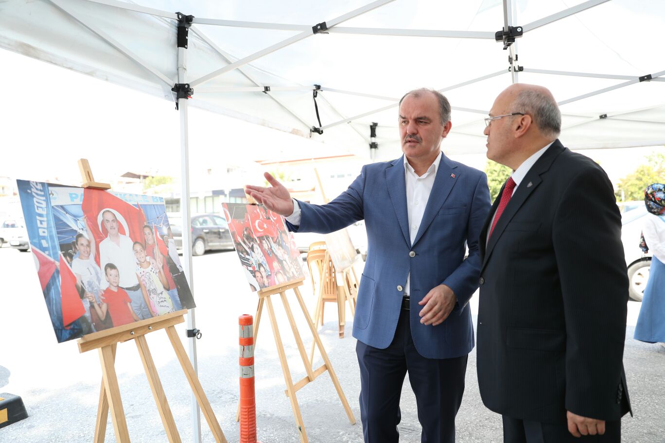 Türkiye’yi bölmeye çalışan hainlerin darbe girişimine kalkışmasının halk tarafından bertaraf edildiği 15 Temmuz’un Pazar günü ikinci yıl dönümü. Bu günle ilgili olarak Pamukkale Belediyesi tarafından düzenlenen resim sergisi açıldı. 15 Temmuz 2016’daki kalkışmada canlarını hiçe sayarak tankların önüne yatan halkın fotoğrafları ile Denizli’deki demokrasi nöbetlerindeki anların ölümsüzleştiği fotoğraflar ve bu güne özel olarak hazırlanan15 Temmuz karavanında da konuyla ilgili videolar beğeniye sunuldu. Pamukkale Belediye Başkanı Hüseyin Gürlesin, sergide Pamukkale Kaymakamı Hayrettin Balcıoğlu’nu da konuk etti. İkili sergideki fotoğrafları inceleyerek, halkın 15 Temmuz’da gösterdiği kahramanlıkları yad etti.