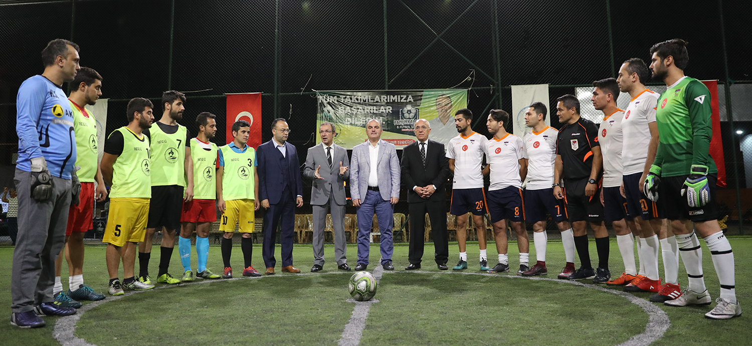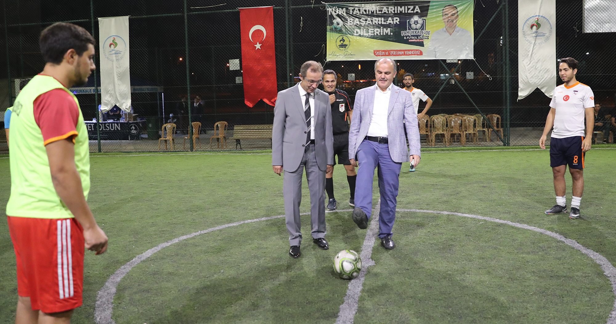 8-14 Ekim tarihleri haftasında kutlanan Amatör Spor Haftası etkinlikleri çerçevesinde başlayan “Pamukkale’de 8. Futbol Şöleni Sonbahar 2018 Halı Saha Futbol Turnuvası”nın açılışına Pamukkale Belediye Başkanı Hüseyin Gürlesin, Başkan Yardımcısı Türkay Gözlükaya, Gençlik Hizmetleri Spor İl Müdürü Ahmet İbanoğlu, Denizli Amatör Spor Kulüpleri Federasyonu Başkanı Feyyaz Ceşen de katıldı. Gençlik Hizmetleri Spor İl Müdürü Ahmet İbanoğlu sporun her türlüsünün gençler için önemli olduğunu söyleyerek, “Pamukkale Belediyesi spora büyük destekler veriyor. Bu turnuvada desteklerden biri. 8. kez düzenleniyor olması çok önemli. Sayın Başkan Gürlesin’i hem bu turnuva hem de spora verdiği destekler nedeniyle teşekkür ediyorum” dedi. Pamukkale Belediye Başkanı Hüseyin Gürlesin ise Amatör Spor Haftası çerçevesinde 8.’si düzenlenen turnuvanın açılışını yaptıklarını dile getirerek, “Biz mahalleler arasında kaynaşmayı sağlamak ve gençlerin spor yapması için bu turnuvayı düzenliyoruz. Geleneksel hale gelen turnuvamızda bu yıl 27 mahalleden 36 takım mücadele ediyor. Turnuva sonunda dereceye giren takımlara ödüllerimiz olacak. Katılan ve mücadele eden tüm takımlara centilmence oyun ortaya koyarak hedeflerine ulaşmalarını diliyorum” diye konuştu. Konuşmaların ardından Pamukkale Belediye Başkanı Hüseyin Gürlesin ile Gençlik Hizmetleri Spor İl Müdürü Ahmet İbanoğlu turnuvanın başlangıcını yaptı.