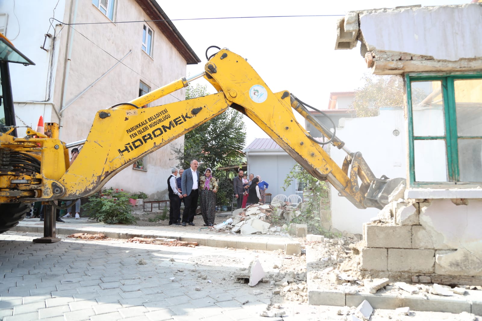Pamukkale Belediye Başkanı Hüseyin Gürlesin, 4 mahallede devam eden üst yapı çalışmalarının 85 milyon liralık bütçeyle devam ettiğini söyleyerek, “Deliktaş da bu mahallelerden biri. 1953 sokakta 47 yıllık olan bina 18. Madde geçtikten sonra sokak ortasında kaldı. Mecburen bu evi yıkmak zorunda kalacaktık. İçinde yaşayan 76 yaşındaki Ayşe teyzemizin maddi durumu iyi olmadığı için biz devletin elini vatandaşımıza uzattık. Kendisine ait olan arsaya prefabrik ev yaptık. Ayşe teyze yeni evine taşındı. Şimdi eski evini yıkacağız. Bu ev yıkıldığı zaman yolun neredeyse yarısını kaplayan engel kalmış olacak. Böyle vatandaşlarımız daha rahat bir şekilde bu yolu kullanacak. Ayşe teyzemiz de daha iyi şartlara sahip olan yeni evinde yaşamaya başladı. Böylece hem mahalleli hem de Ayşe teyze mağdur olmadı. Biz Pamukkale Belediyesi olarak yapılan çalışmalarda kimsenin mağdur olmamasına özellikle dikkat ediyoruz. Buradaki durumda bunun en güzel göstergesi. Ben Ayşe teyzeye yeni evinde sağlıklı mutlu bir ömür diliyorum” dedi. Deliktaş Mahallesi 1953 sokakta kötü görüntüye sebep olan ve neredeyse yarısını kaplayan harabe ev Pamukkale Belediyesi Fen İşleri Müdürlüğü ekipleri tarafından yıkıldı. 47 yılını bu evde geçiren Ayşe Karaıslı ise yıkılan eski evini Pamukkale Belediye Başkanı Hüseyin Gürlesin’e sarılarak, mutlu gözlerle izledi.