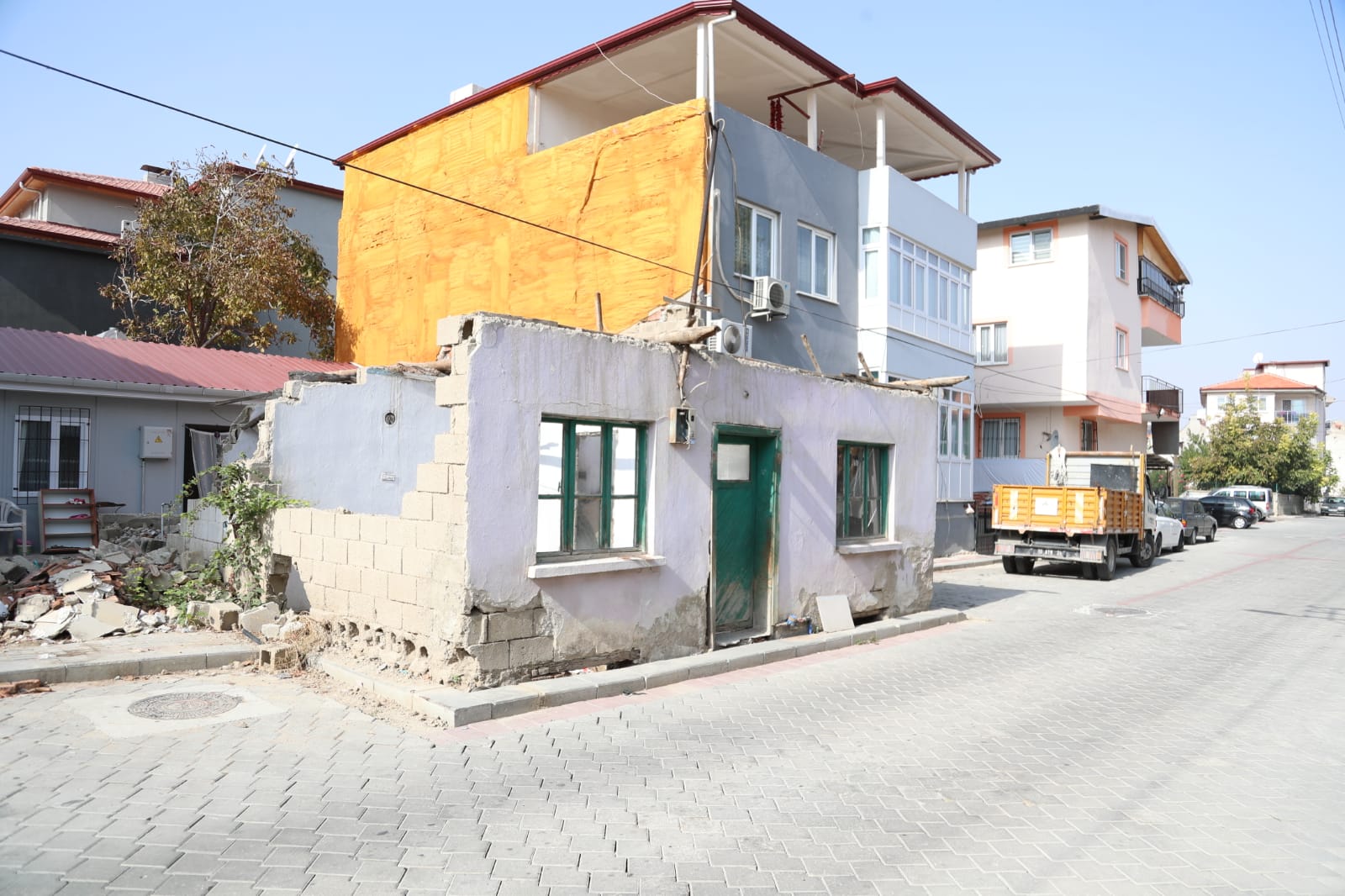 yolu işgal eden harabe halindeki evinin yerine