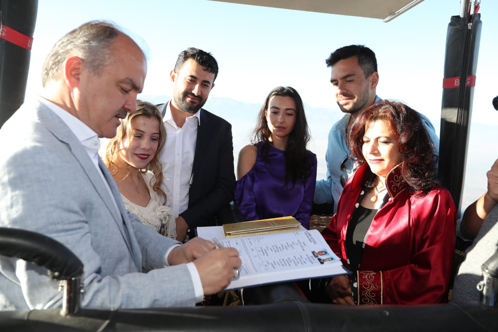 Halil Cihad Kayaoğlu ve Elif Kesici çifti, kendilerine böyle bir olanak sağladığı için Pamukkale Belediye Başkanı Hüseyin Gürlesin’e teşekkür ettiler. Çift, “Bir ömür için birbirimize gökyüzünde söz vermek istedik. Pamukkale Belediye Başkanımıza bu hayalimizi ulaştırdık. Kendisi de sağ olsun kabul etti. Bizzat nikâhımızı kıydı. Hayalimizdi, gerçekleşti. Çok mutluyuz. Mutluluktan ayaklarımız yerden kesilmişti, nikâhımızı da gökyüzünde kıydık. Pamukkale Belediye Başkanımıza ve mutlu anımızı paylaşan herkese çok teşekkür ediyoruz” dediler. Nikâh akdini imzalayan Pamukkale Belediye Başkanı Hüseyin Gürlesin, yeni evlenen çifte Pamukkale Belediyesi’nin Türk Bayrağı, Kuran-ı Kerim, Kahve fincanı setinden oluşan hediyesini vererek bir ömür boyu mutluluklar diledi.