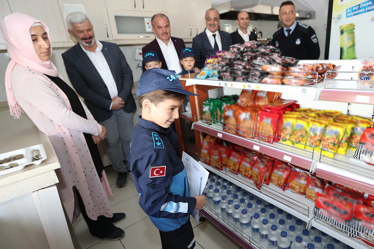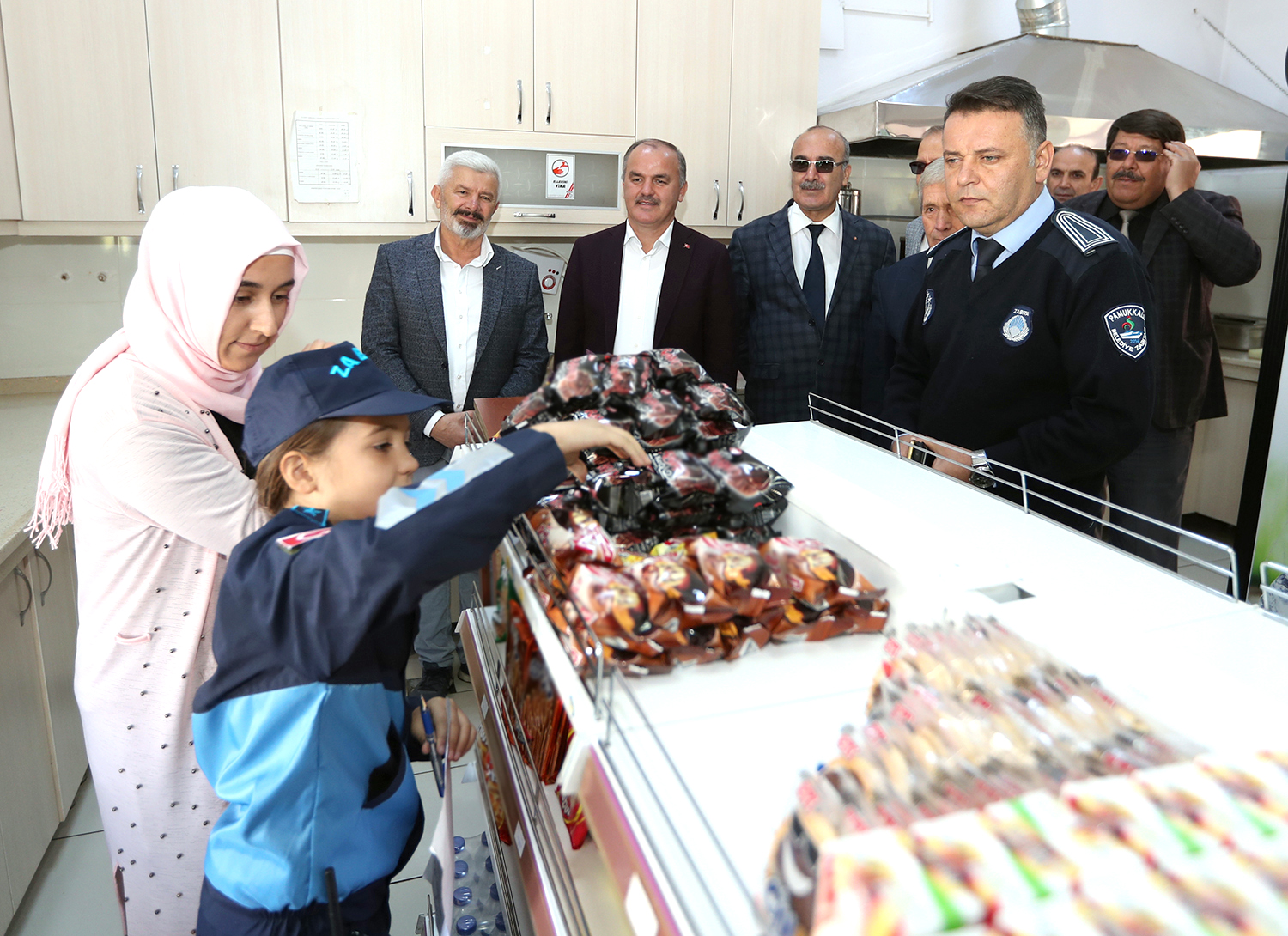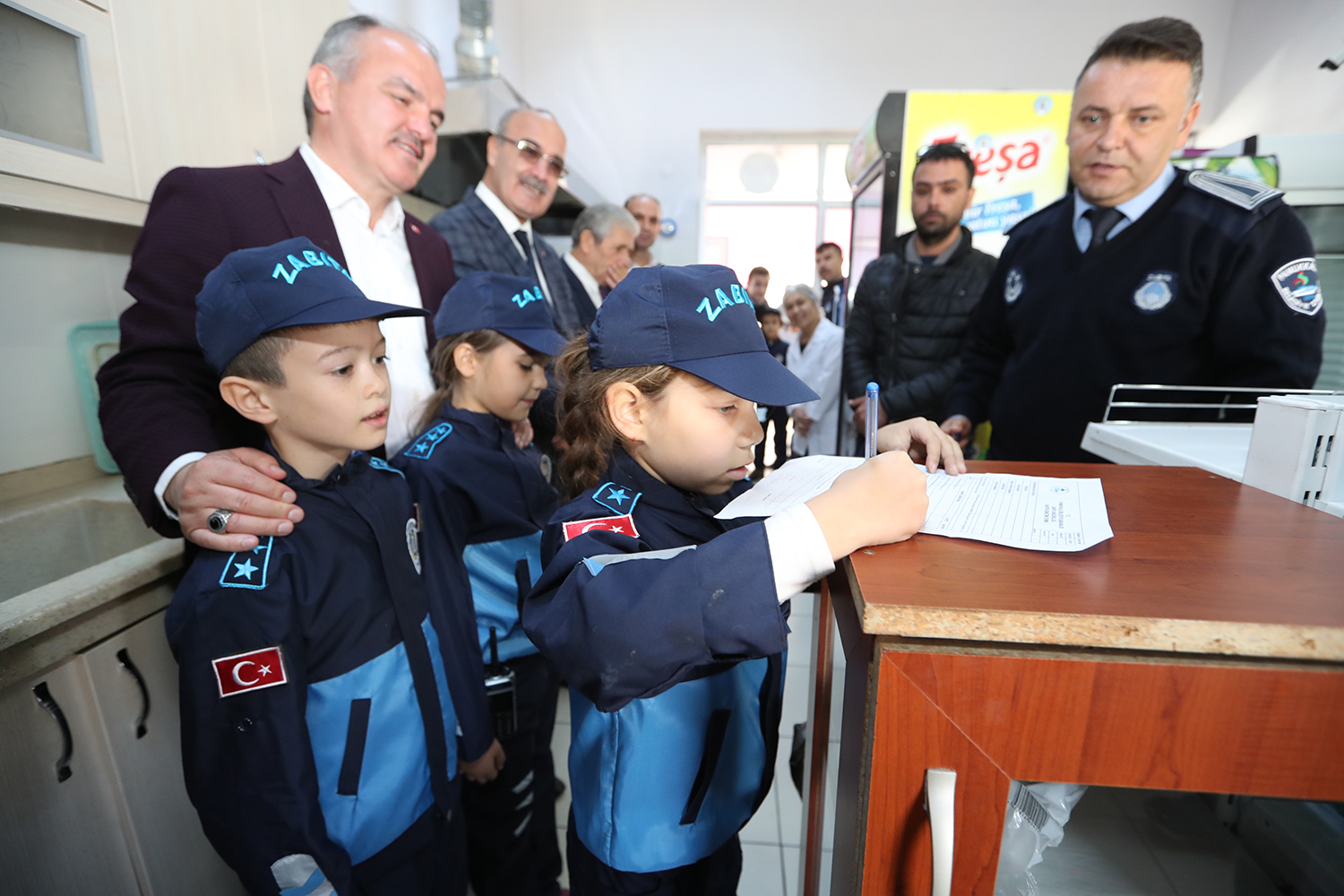 Pamukkale Belediyesi tarafından geçtiğimiz yıl da düzenlenen ‘Bilinçli Tüketici İçin Kendi Kantinimi Kendim Denetliyorum’ projesi, öğrencilerin bilinçli tüketici olmaları noktasında bu yıl da düzenleniyor. Projenin startını Saadet Erikoğlu İlkokulu’nda veren Pamukkale Belediye Başkanı Hüseyin Gürlesin, “Halkımızla direkt etkileşim kurması ve halk sağlığının korunması noktasında Zabıta bizim en önemli birimimiz” dedi. Başkan Gürlesin, zabıta kıyafetleri giyen öğrencilerle birlikte, okul kantininde bulunan gıdaların son kullanma tarihine, saklanma koşullarına, kantinin genel hijyenine, sağlık kurallarına uyumu ile ilgili denetim yaptı. Küçük Zabıtalar denetim sonrasında kendi kantinleri ile ilgili rapor hazırladılar. Küçük Zabıtalardan Emir İlhan ve Bade Temelci, zabıta kıyafetlerini çok sevdiklerini söyleyerek büyüyünce zabıta olacaklarını belirttiler.