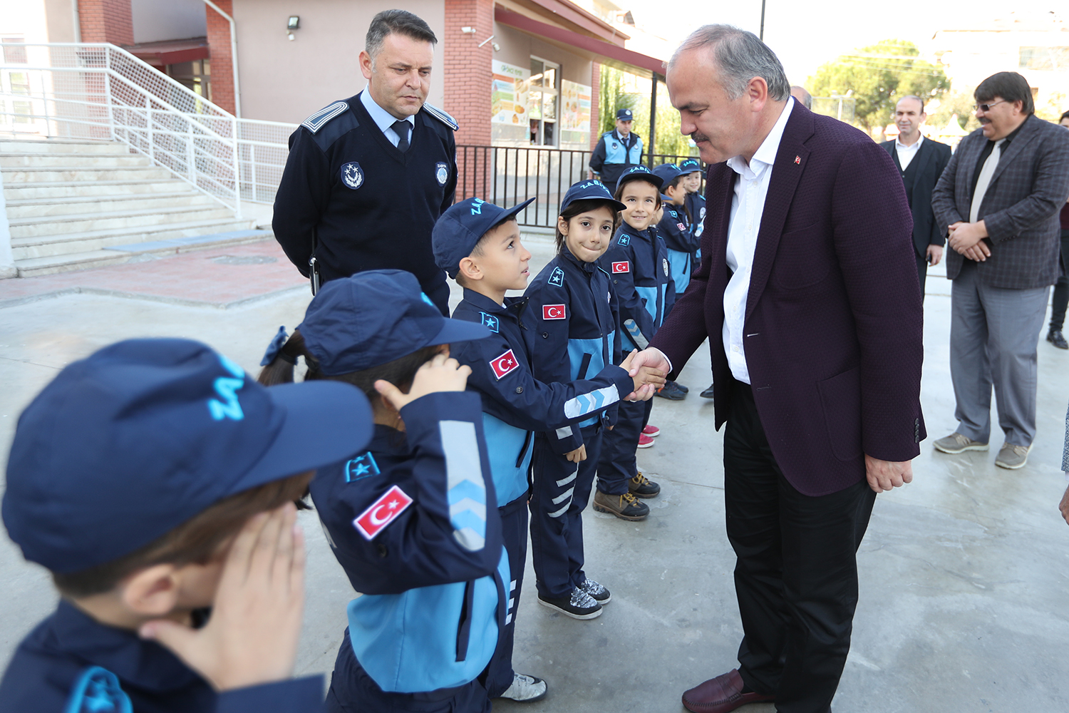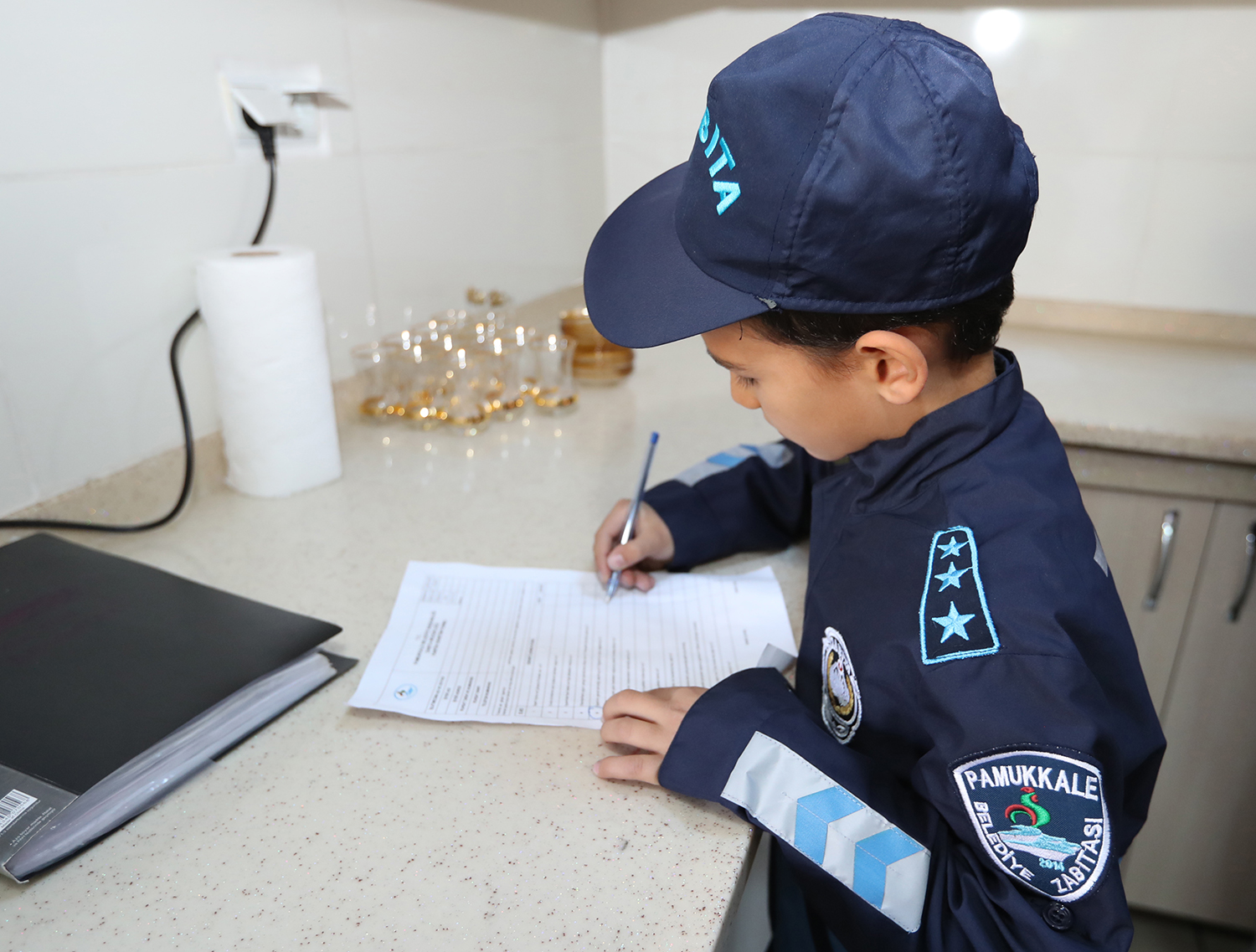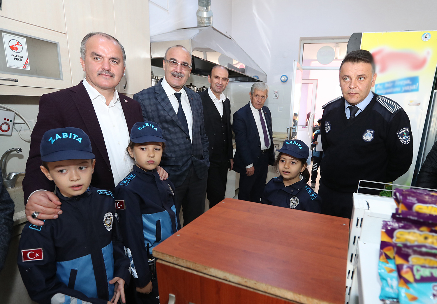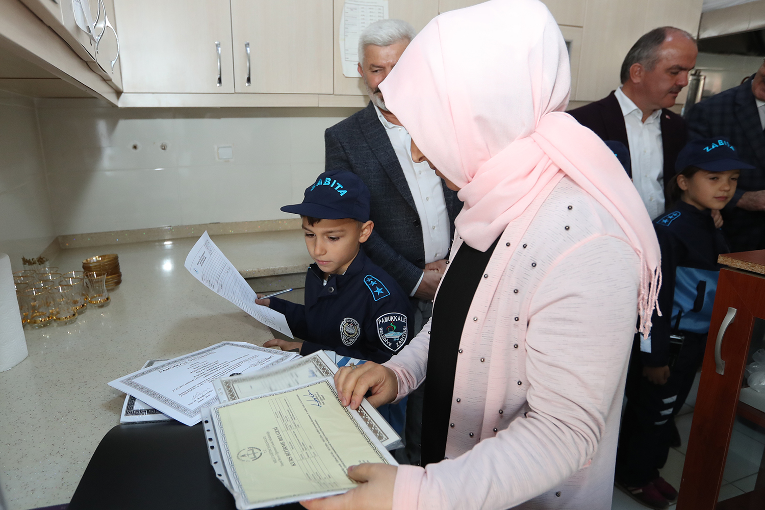 Pamukkale Belediyesi tarafından geçtiğimiz yıl da düzenlenen ‘Bilinçli Tüketici İçin Kendi Kantinimi Kendim Denetliyorum’ projesi, öğrencilerin bilinçli tüketici olmaları noktasında bu yıl da düzenleniyor. Projenin startını Saadet Erikoğlu İlkokulu’nda veren Pamukkale Belediye Başkanı Hüseyin Gürlesin, “Halkımızla direkt etkileşim kurması ve halk sağlığının korunması noktasında Zabıta bizim en önemli birimimiz” dedi. Başkan Gürlesin, zabıta kıyafetleri giyen öğrencilerle birlikte, okul kantininde bulunan gıdaların son kullanma tarihine, saklanma koşullarına, kantinin genel hijyenine, sağlık kurallarına uyumu ile ilgili denetim yaptı. Küçük Zabıtalar denetim sonrasında kendi kantinleri ile ilgili rapor hazırladılar. Küçük Zabıtalardan Emir İlhan ve Bade Temelci, zabıta kıyafetlerini çok sevdiklerini söyleyerek büyüyünce zabıta olacaklarını belirttiler.