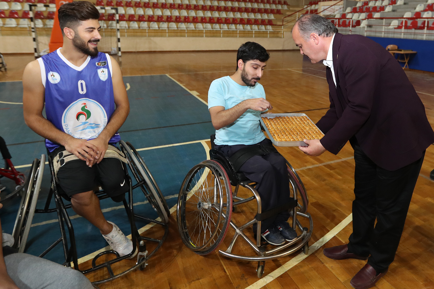 Pamukkale Belediye Başkanı Hüseyin Gürlesin’in desteğini her zaman sürdürdüğü Tekerlekli Sandalye Basketbol Takımı oyuncularına antrenmanını izleyerek, oyunculara baklava ikram etti. Ardından da yeni sezonda giyecekleri formaları takdim etti. Oyunculardan Meryem Tan, Başkan Gürlesin’in her zaman kendilerine destek olduğunu söyleyerek, teşekkür etti. Takım Kaptanı Doğan Can Köktaş, “Bugün başkanımız bizi ziyaret etti. Geldiği için teşekkür ediyorum. Bu sezon daha iyi olacağımıza inanıyorum. Başkanımızın desteklerinden dolayı çok teşekkür ediyorum” dedi.