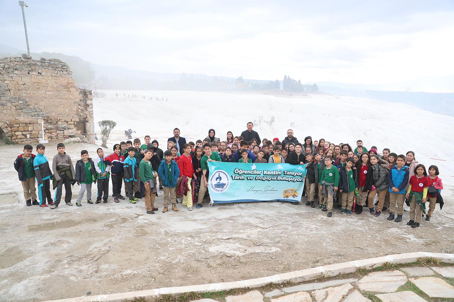 Bir çok projesi örnek olan Pamukkale Belediyesi, ilçe genelindeki tüm ortaokullarda bulunan öğrencileri Pamukkale tarihini kapsayan geziye götürüyor. “Öğrenciler kentini tanıyor, tarih ve doğayla buluşuyor” adıyla yapılan proje ile öğrenciler, Pamukkale, Karahayıt, Kocaçukur, Antik Havuz ve müzelere götürüyor. Pamukkale Belediye Başkanı Hüseyin Gürlesin, hem eğitim hem de kültürel anlamda önemli bir projeyi hayata geçirdiklerini ifade ederek, “Çocuklarımıza önce kendi tarihimizi öğretmemiz gerekir ki, yaşadıkları kentin değerini bilsinler. Bu düşünceyle bu projeyi hazırladık. Yaklaşık 4 bin öğrencimiz tarihini öğrenecek” dedi.