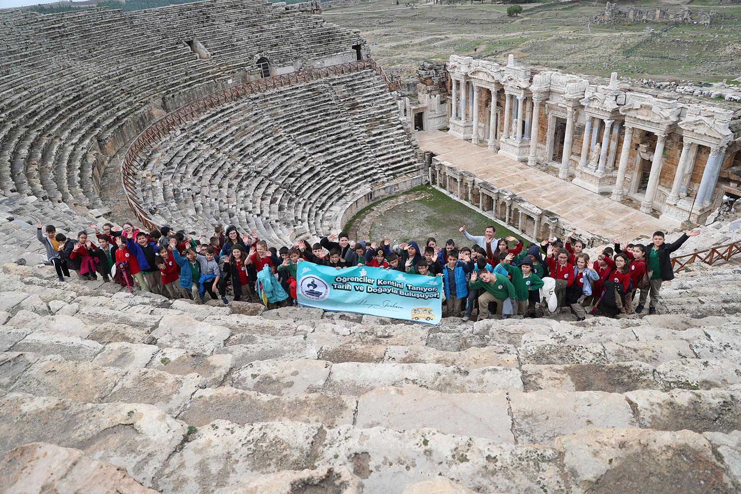 Eğitim konusunda önemli çalışmalar yapan Pamukkale Belediyesi, “Öğrenciler Kentini Tanıyor, Tarih ve Doğayla Buluşuyor” projesini başlattı. Proje kapsamında Pamukkale ilçe sınırları içerisinde bulunan tüm ortaokul birinci sınıf öğrencilerine Pamukkale’nin tarihini öğretiliyor. Göreve geldiği günden bu yana eğitimden, sağlığa, güvenlikten sosyal belediyeciliğe bir çok alanda öncü işler yapan Başkan Gürlesin, Pamukkale’nin adını her platformda duyurmak, tanıtmak adına bir çok projeyi hayata geçirdi. Belediye Başkanı Hüseyin Gürlesin, hem turizme hem de eğitime destek vermek maksadıyla ortaokul öğrencilerine yönelik Pamukkale’nin tarihini yerinde görerek öğrendikleri projeyi hayata geçirdi.