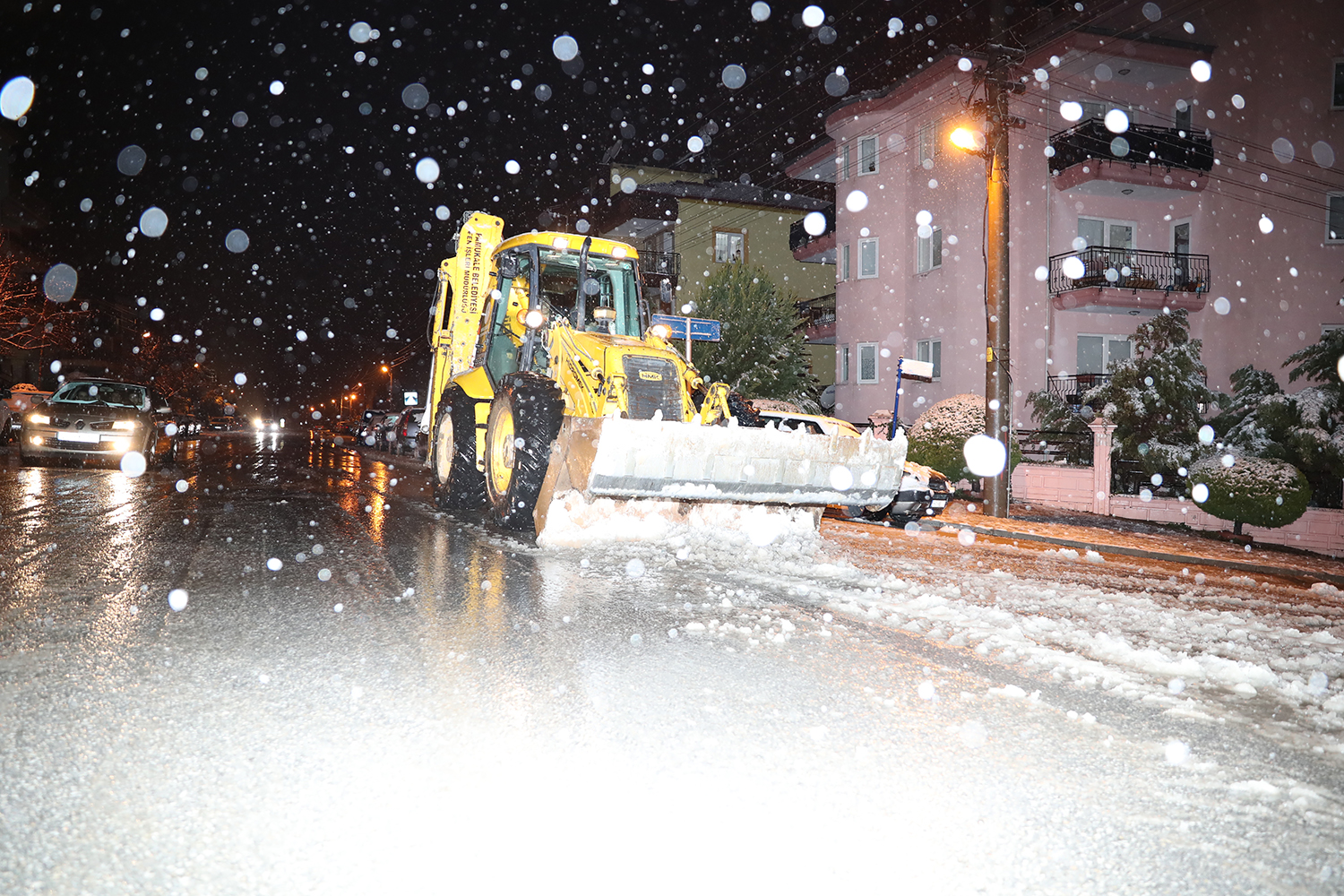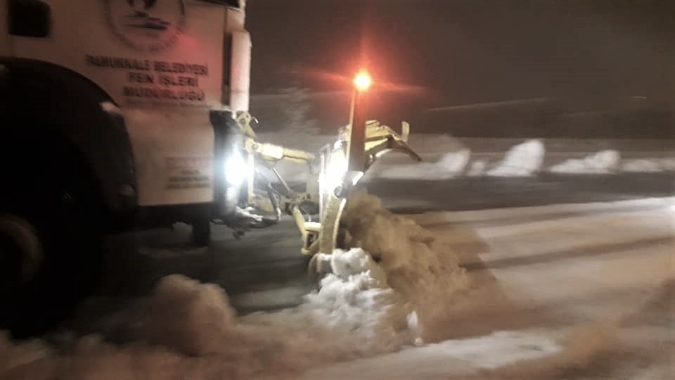 Kenti etkisi altına soğuk ve yağışlı hava dün akşam saatlerinde yerini kara bıraktı. Şehir merkezinde de etkili olan kar yağışı nedeniyle Pamukkale Belediyesi Fen İşleri Müdürlüğü ekipleri teyakkuza geçti. Özellikle kentin yüksek mahalleleri olan Cankurtaran ve Karataş ile şehir içindeki Tekke, Gökpınar, Zümrüt, Kervansaray, Zeytinköy, Karakurt ve Pınarkent mahallelerinde ekipler çalışmalara başladı. 5 kepçe, 5 tuzlama ve 3 küreme tuzlama aracından oluşan 8 ekip yolların açık kalması için yoğun çaba sarf etti. Çalışmalar gece yarısından sonra da devam ederken, Pamukkale genelinde tüm yollar açık kaldı.