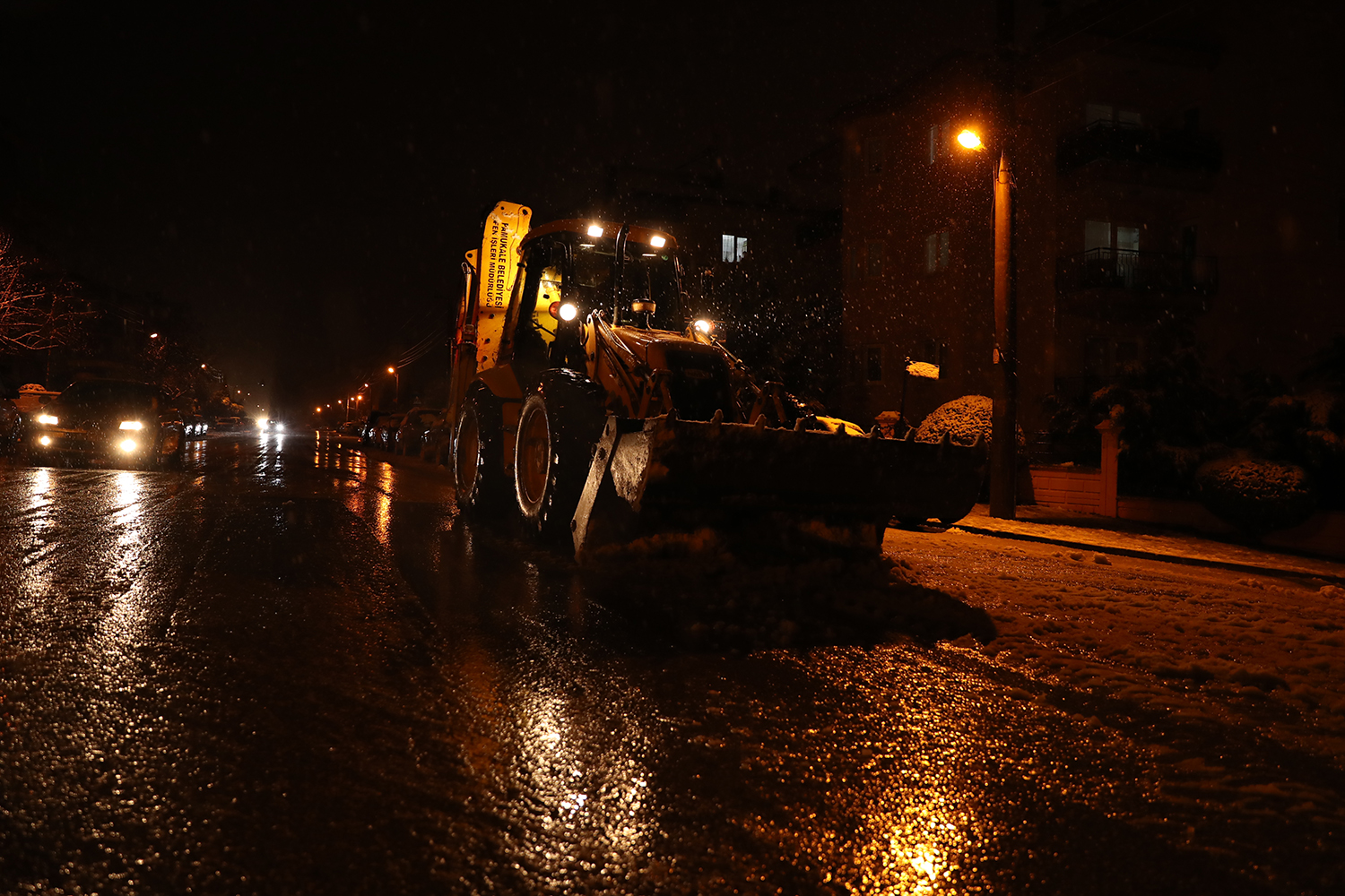 İlçenin özellikle yüksek kesimlerinde, ana arter ve ara sokaklarda kar küreme ve tuzlama çalışmalarını kar yağışının başlamasıyla birlikte başladıklarını söyleyen Pamukkale Belediye Başkanı Hüseyin Gürlesin, “Kar yağışının vatandaşlarımızın günlük hayatlarını olumsuz etkilememesi için, sorumluluk alanımızdaki yerlerde karla mücadele çalışmalarımızı aralıksız sürdürüyoruz” dedi. Başkan Gürlesin, meteorolojiden gelen bilgiler doğrultusunda Pamukkale Belediyesi ekiplerini sürekli hali hazırda beklettiklerini belirterek, kent merkezinde ve yoğun olarak yüksek kesimlerde etkili olan kar yağışıyla birlikte ekiplerin kar küreme ve tuzlama çalışmalarını sabaha kadar sürdürdüklerini ifade etti. Yüksek kesimlerde ekiplerin halen hazırda beklediğini, birçok yerde de tuzlama çalışmalarına devam edildiğini sözlerine ekledi.