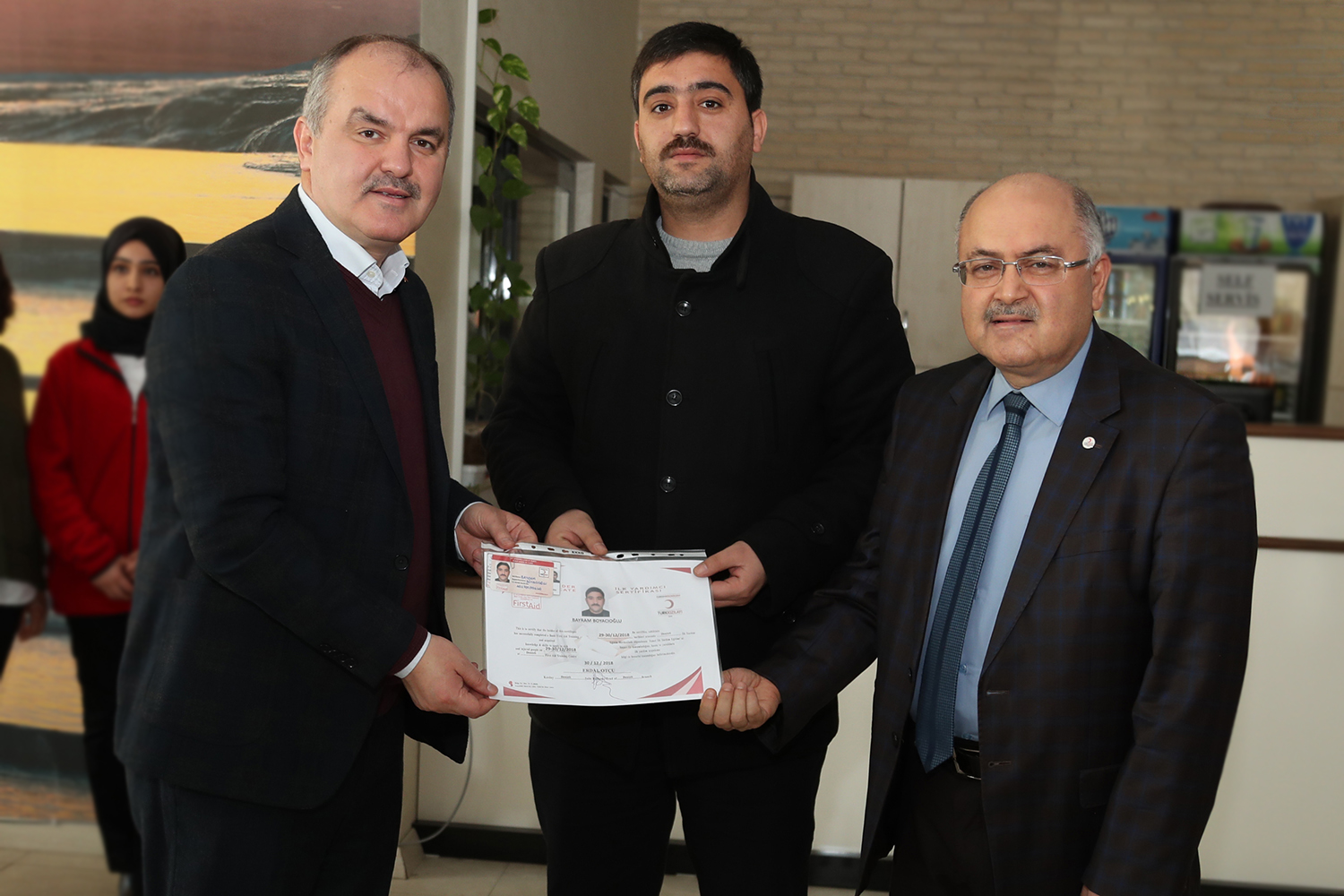Pamukkale Belediye Başkanı Hüseyin Gürlesin ise ilk yardımın önemli olduğunu ifade ederek, “Başta kendimiz için, ummadığımız anda karşımızda çıkan kazalarda ilk müdahale her zaman hayati önem taşır. Bu bilinçle de Pamukkale Belediyesi olarak 68 mahallemize hizmet verirken şoför arkadaşlarımız sürekli hareket halinde olmasından dolayı ilk yardım eğitiminde önceliği onlara verdik” dedi. Belediye Başkanı Hüseyin Gürlesin, Sertifikalı Temel İlkyardım Eğitimi’nin sadece şoför hizmeti veren personele değil tüm belediye personelini kapsayan bir eğitim olduğunu, belediyenin farklı birimlerinde çalışan personele yönelik eğitimlerin devam ettiğini belirtti. “Bu çalışmamız insana verilen bir değerdir” diyen Başkan Gürlesin, “İhtiyaç olmasa bile biz bazı şeylere hazırlıklı olmalıyız. Bu anlamda belediye personelimizin buna hazırlıklı olması için Kızılay’ın tecrübelerinden faydalanmak istedik. Sertifikanın uluslararası boyutunun da olması çalışmamızı çok daha fazla önemli hale getiriyor” diye konuştu.