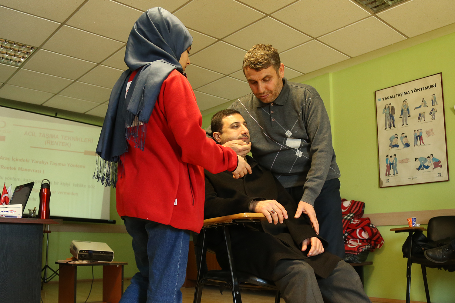 Vatandaşlara hizmet veren personellerin eğitimleri ile ilgili önemli çalışmalara imza atan Pamukkale Belediyesi, bir eğitimi daha başarıyla tamamladı. Türk Kızılay Derneği Denizli Şubesi ile Pamukkale Belediyesi tarafından yapılan “Sertifikalı Temel İlk Yardım Eğitimi” tamamlandı. Pamuk Kafe’de düzenlenen sertifika törenine Pamukkale Belediye Başkanı Hüseyin Gürlesin, Türk Kızılay Derneği Denizli Şube Başkanı Erdal Otçu ve eğitime katılan şoför olarak görev yapan belediye personeli katıldı. Pamukkale Belediyesi personeline Türk Kızılay Derneği Denizli Şubesi ilk yardım eğitmenleri tarafından ilk yardım temel uygulamaları, temel yaşam desteği, hava yolu tıkanıklığı, kanamalar ve çeşitleri, vücuda yabancı cisim batması, yanık sıcak çarpması, donma, kırık, çıkık, burkulma, bilinç bozuklukları, zehirlenmeler, hayvan ısırmaları, sokmaları, boğulmalar ve hasta, yaralı taşıma teknikleri gibi konularda uygulamalı eğitimler verildi. 2 gün boyunca 16 saat süren eğitimler sonunda, İl Sağlık Müdürlüğü’nce eğitim sonu değerlendirme sınavında başarılı personel sertifika almaya hak kazandı.