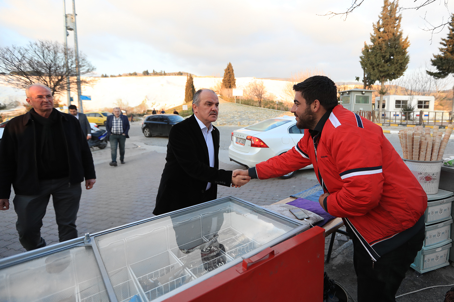 Pamukkale Belediye Başkanı Hüseyin Gürlesin, Pamukkale ilçesinin adını aldığı, sadece Türkiye’nin değil dünyanın en önemli turizm bölgelerinden olan ve UNESCO Dünya Mirası Listesi’nde yer alan Pamukkale travertenleri de içine alan Pamukkale Mahallesi’ni esnafını ziyaret etti.