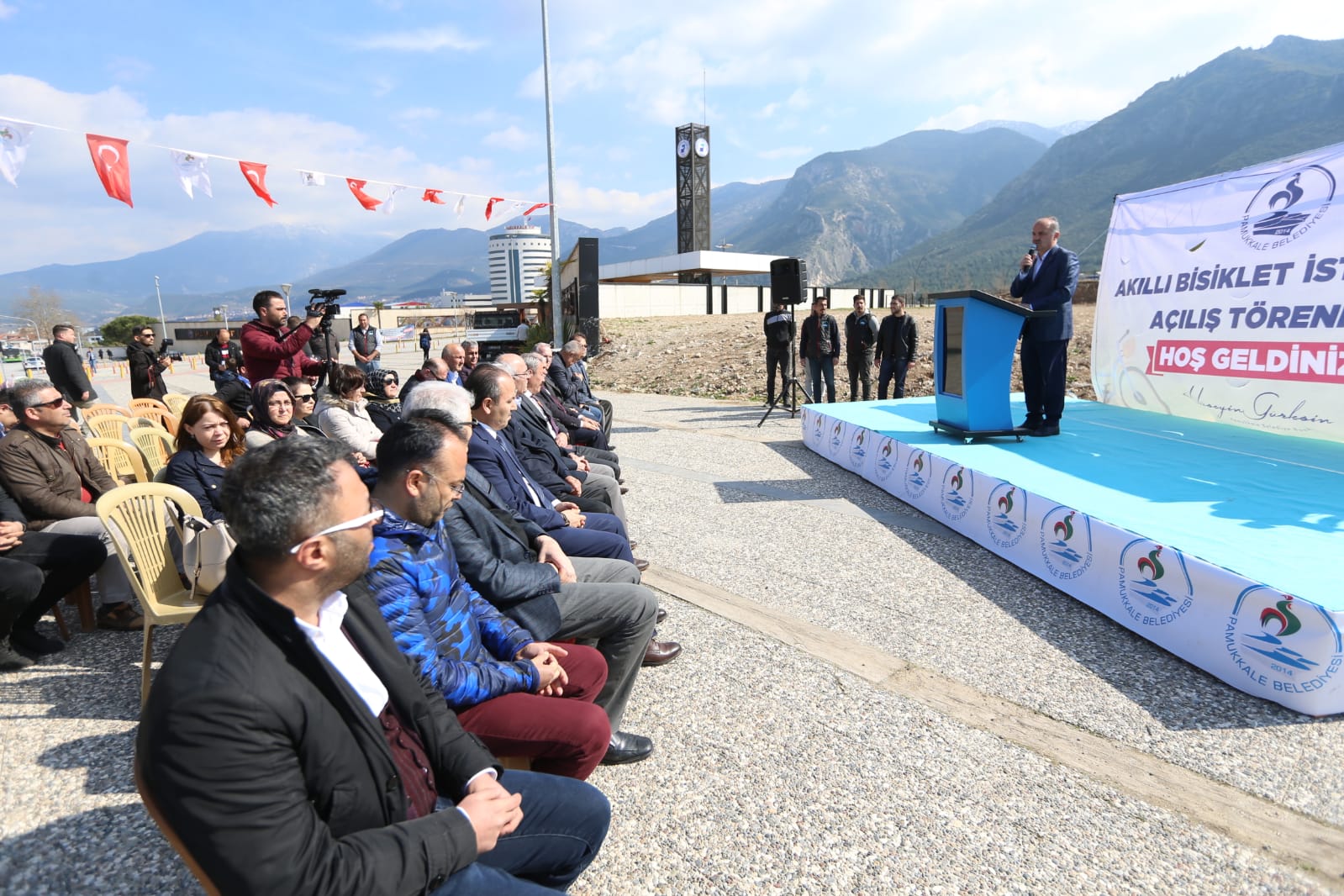 Pamukkale Belediyesi, örnek projelerini halkın hizmetine sunmaya devam ediyor. Denizli’de bir ilk olan “Akıllı Bisiklet Uygulaması” düzenlenen törenle açıldı. Pamukkale Belediye Başkanı Hüseyin Gürlesin, “Biz 5 yıl önce söz verdiğimiz vaatlerin fazlasını yaptık. Akıllı Bisikletler hem zaman kazanımı hem de çevreyi koruması adına çok önemli. Bundan sonra araç yerine bisikletle ulaşım sağlanması için bu projemiz çok önemli” dedi.