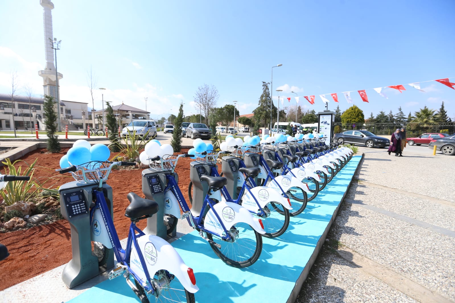 Denizli’nin en büyük ilçesi olan Pamukkale’nin 5 yıl önce kurulan belediyesi önemli projelere imza atmaya devam ediyor. Kurucu Belediye Başkanı Hüseyin Gürlesin bir çok vizyon projeyi hayata geçirirken, çevreye duyarlı çalışmalardan olan Akıllı Bisiklet Uygulaması’nı hizmete açtı. Kısa adı PAKBİS olan Pamukkale Belediyesi Akıllı Bisiklet Uygulaması, artık bisikletle ulaşım sağlamak isteyenlere hizmet verecek. 8 ayrı noktada 64 bisiklet ve 96 park yeri ile Akıllı Bisiklet Uygulaması özellikle öğrencilerin yoğun olduğu bölgelerde kullanılacak. Bağbaşı Cevat Akşit Öğrenci Yurdu yanı, Zeytinköy Şiir Otel arkası, Asmalıevler Pekdemir AVM altı, Cumhuriyet Mahallesi İnci Otel yanı, Pamukkale Üniversitesi girişi, Kınıklı Mahallesi Anfi Park üstü ve Pamuk Kafe Üniversite önündeki duraklarda yer alan bisikletler üyelik yapılarak alınacak olan PAKBİS kartıyla, saati 1.5 TL’den kiralanabilecek. www.pakbis.com.tr adresi başta olmak üzere KİOKS’ların olduğu noktalardan para yüklemesi yapılabilecek. Pamukkale Belediyesi Akıllı Bisiklet Uygulaması’nın açılışı PAÜ önündeki durakta Yargıtay Onursal Cumhuriyet Başsavcısı Hasan Erbil, Ak Parti Denizli Milletvekili Şahin Tin, Ak Parti eski milletvekili Mehmet Salih Erdoğan’ın da katıldığı törenle açıldı.
