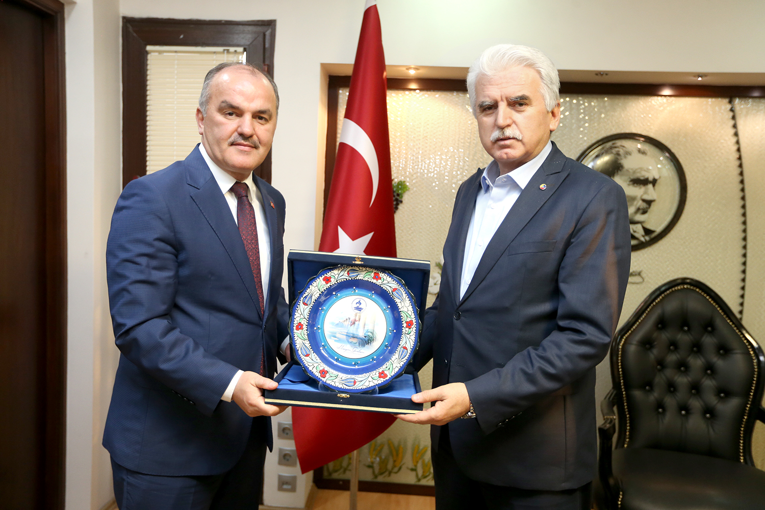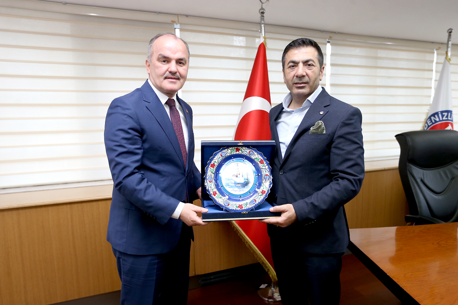 Denizli Ticaret Odası Başkanı Uğur Erdoğan ve Denizli Ticaret Borsası Başkanı İbrahim Tefenlili, Pamukkale Belediye Başkanı Hüseyin Gürlesin’in ziyaretinden memnuniyet duyduğunu ifade ederek, Pamukkale İlçesi’ne bugüne kadar yaptığı hizmetlerden dolayı teşekkür ettiler. Başkan Gürlesin, ziyaret sonunda kendisine ev sahipliği yapan Erdoğan ve Tefenlili’ye günün anısına Pamukkale’nin güzelliklerinin yansıtıldığı çini işlemeli tabak hediye etti.