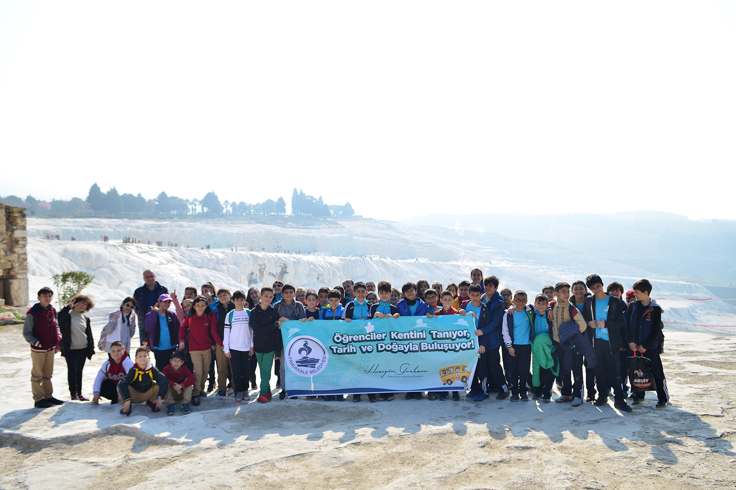 Eğitim alanındaki başarılı projelerle dikkat çeken Pamukkale Belediyesi, ilçe genelindeki tüm ortaokul birinci sınıf öğrencilerini kapsayan “Dersimiz; Pamukkale Tarihi” sloganıyla başlattığı proje tamamlandı. Pamukkale Belediye Başkanı Hüseyin Gürlesin, “Öğrenciler kentini tanıyor, tarih ve doğayla buluşuyor” adlı proje kapsamında yaklaşık 4 bin ortaokul öğrencisine Pamukkale’nin tarihi yerlerini gezdirdiklerini açıkladı.