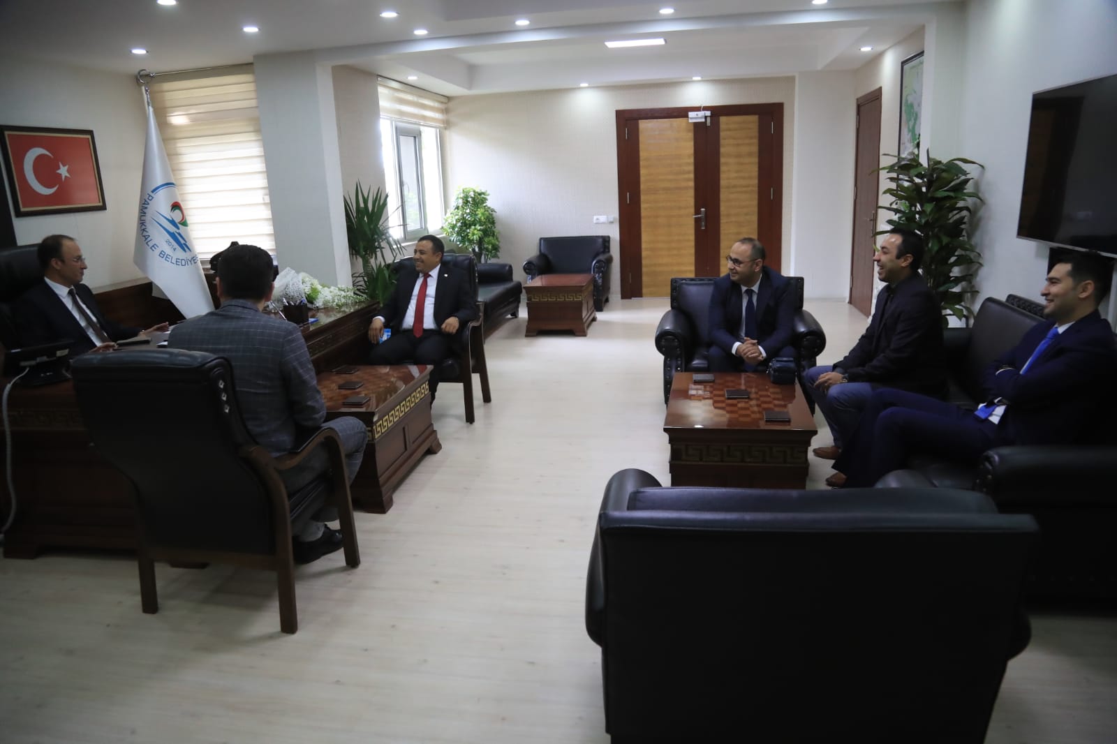 Pamukkale’de halkın teveccühüyle başkanlık görevini mazbata töreniyle alan Pamukkale Belediye Başkanı Avni Örki, makamında tebrik ve hayırlı olsun ziyaretlerini kabul etmeye devam ediyor. Başkan Örki’yi HAK-İŞ ve BEM-BİR-SEN Yönetim Kurulu Üyeleri ziyaret etti.