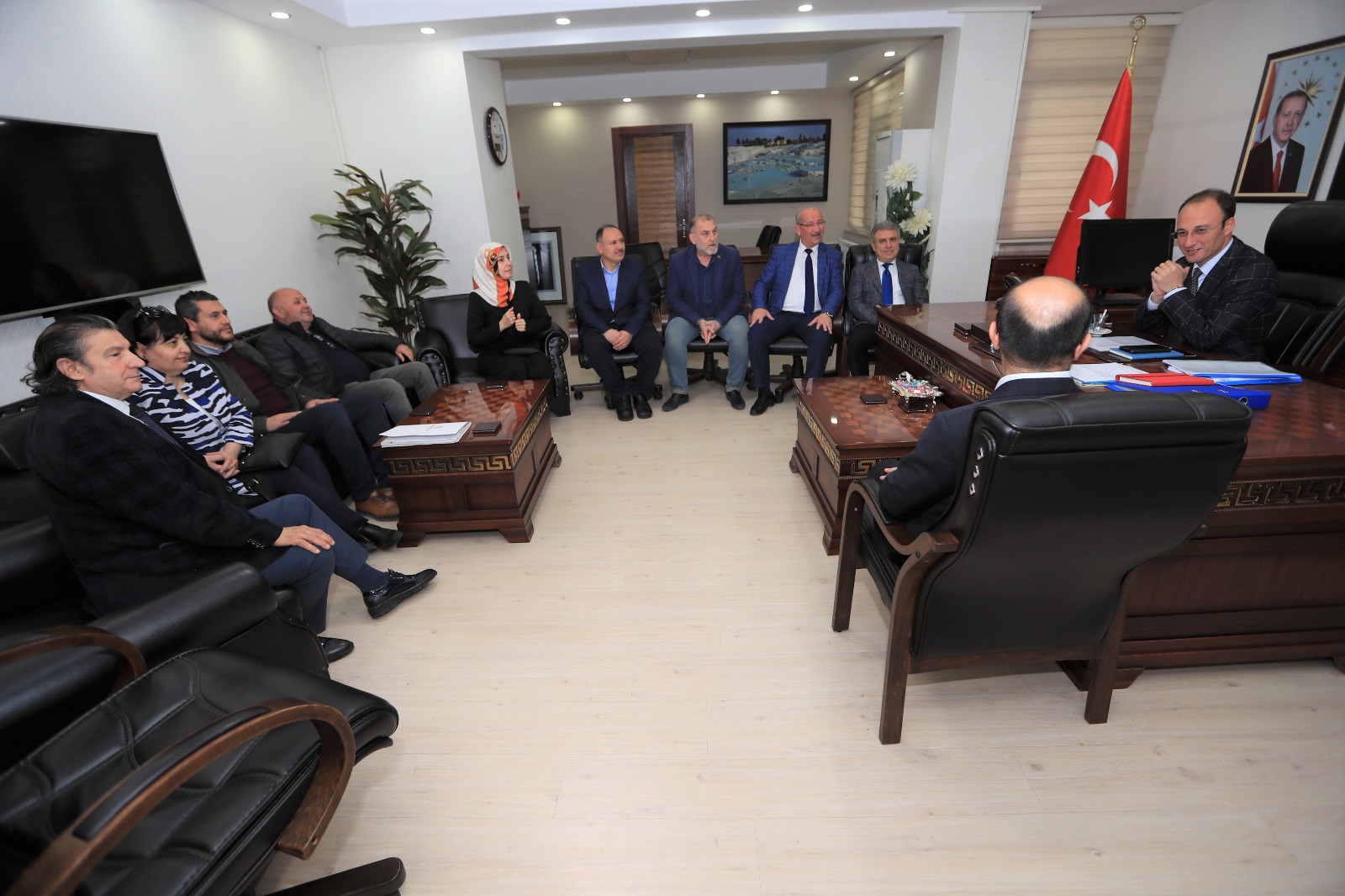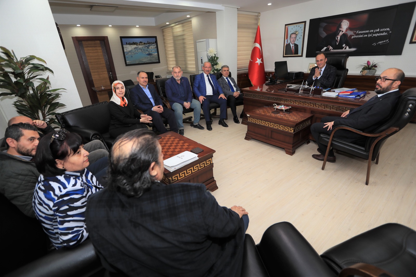 Tebrik ve hayırlı olsun ziyaretlerini kabul etmeye devam eden Pamukkale Belediye Başkanı Avni Örki, 2014-2019 döneminde görev yapan Pamukkale Belediye Meclisi kurucu üyelerini ağırladı.