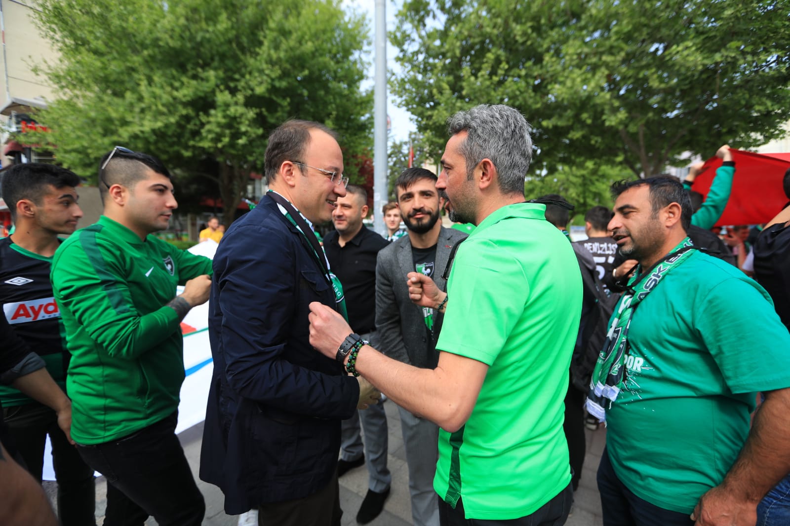 Şampiyonluk yolunda Gençlerbirliği deplasmanında kritik bir maç oynayacak olan Denizlispor'a bir destek de Pamukkale Belediyesi'nden geldi. Pamukkale Belediye Başkanı Avni Örki, Denizlisporlu taraftarların deplasman maçına gitmek için talep ettiği otobüs isteğini kırmayarak, yüzlerce taraftarın Ankara'ya gitmesi için otobüsler tahsis etti. Bu akşam saat 19.30'da Ankara'da oynanacak olan maç için 15 Temmuz Delikliçınar Şehitler Meydanı'ndan hareket edecek taraftarları sabah saatlerinde yolcu eden Başkan Örki'yi, taraftarlar alkış ve tezarühatlarla karşıladı. Taraftarlarla kucaklaşan Başkan Avni Örki, taraftarlara hayırlı yolculuklar ve şampiyonluk yolunda Denizlispor'a başarılar temenni etti. "Zafere ve şampiyonluğa olan inancımız tamdır" Denizlispor'a ve onun efsane taraftarına verilecek olan desteğin çok önem arz ettiğini ifade eden Pamukkale Belediye Başkanı Avni Örki,"Futbol komplike ve kendi içinde birçok dinamiti barındıran bir spordur. Futbolcularından taraftarına kadar bir bütünlük olduğu zaman zaferi elde etmek mümkündür. Türk futbol tarihine adını altın harflerle yazdırmış, birçok başarı hikâyesini kendi için barındıran Denizlisporumuz, 9 yıldır süper lige hasret çekiyor. Aradan geçen yılların ardından ise gururumuz olan kulübümüz şampiyonluğa giden yolda çok başarılı ve önemli bir sezon geçirdi. Zafere ulaşmamız, şampiyon olmamız için ise son düzlüğe girmiş bulunmaktayız. Biz de Pamukkale Belediyesi olarak takımımızı deplasmanda yalnız bırakmamak, onların gücüne güç katmak için taraftarlarımızın isteğini kırmayarak onları Ankara'ya yolcu ettik. İnanıyorum ki Horozumuz arkasına efsane taraftarımızın desteğini de alarak Gençlerbirliği deplasmanından zaferle dönecektir. Ben Denizlisporumuza kritik deplasman maçında başarılar diliyorum. Zafere ve şampiyonluğa olan inancımız tamdır, o sene bu sene" ifadelerini kullandı.